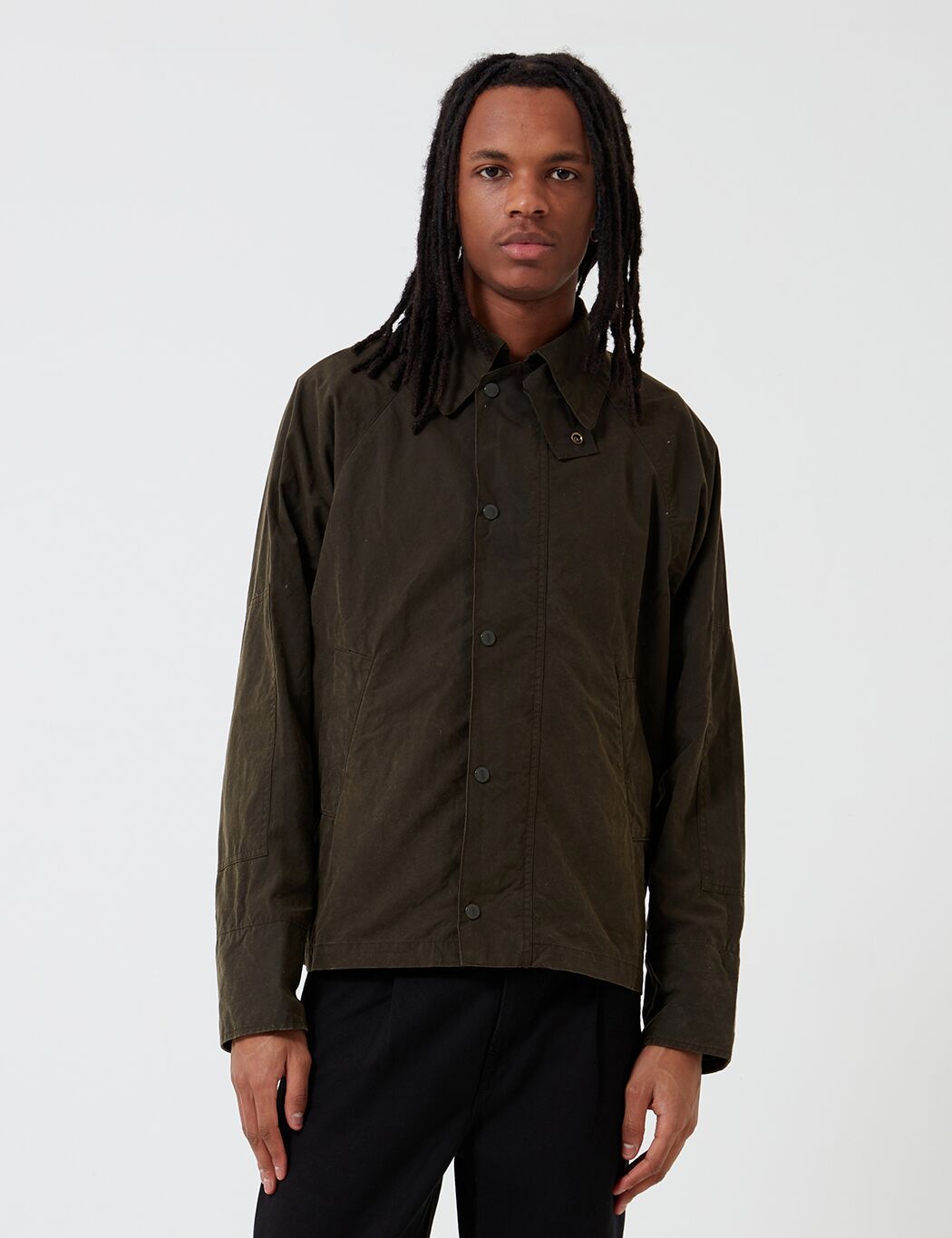 The Barbour x Engineered Garments Washed Graham Casual Jacket in olive green from the Barbour outerwear Spring/Summer 2020 collection.