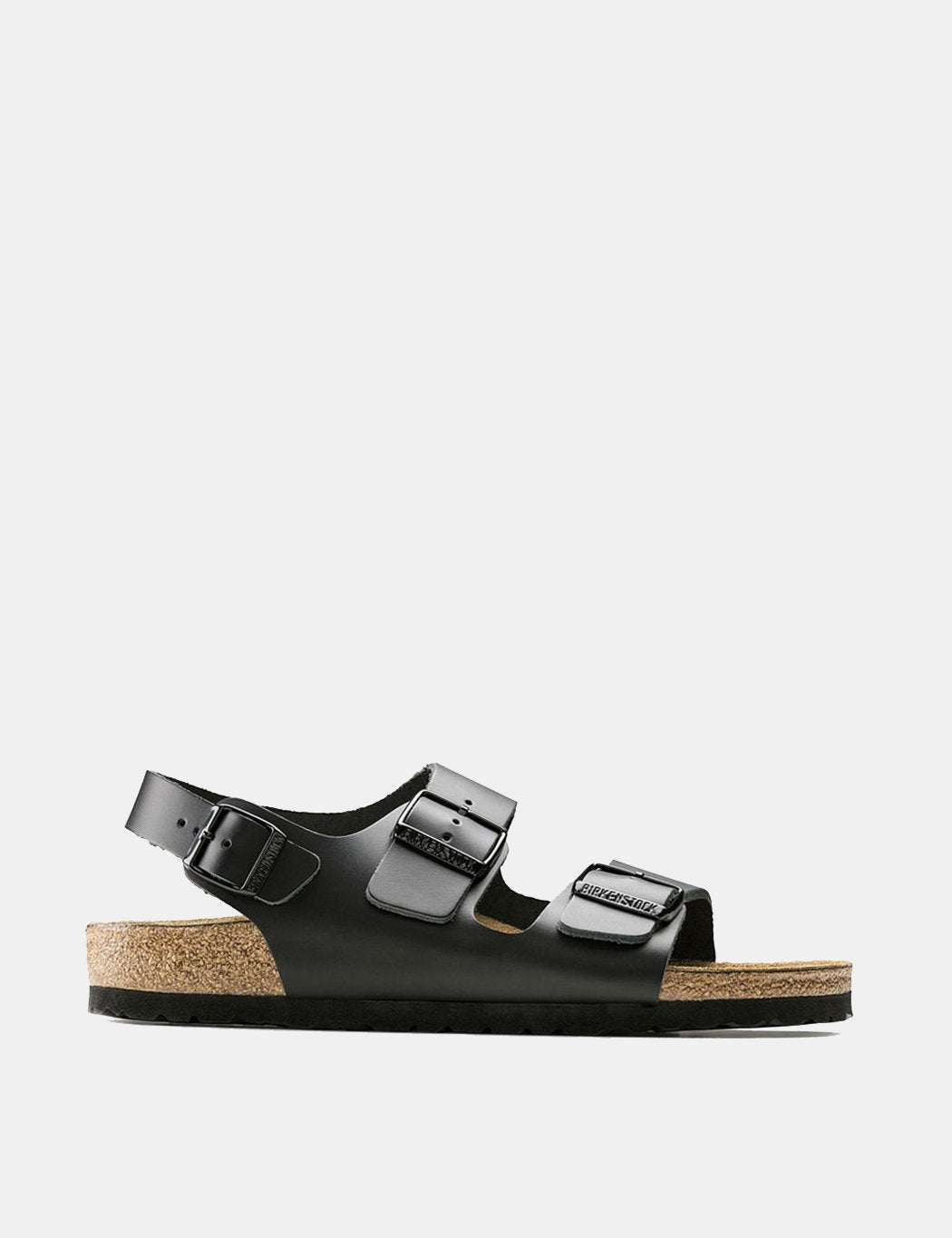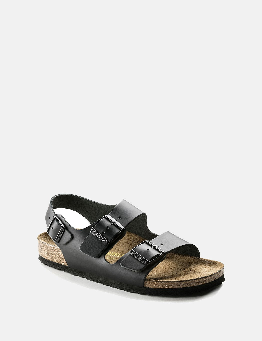The Birkenstock Milano Sandals in Birko-Flor Black from the Birkenstock Classic collection.