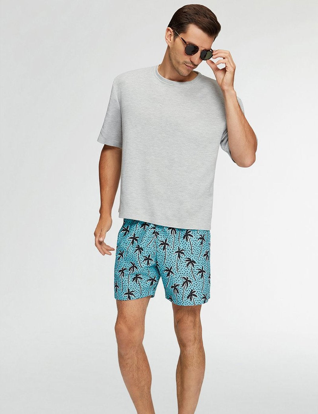 The Boardies Flair Palm swim shorts in a Light Blue with black palm tree all over graphic from the Spring Summer 2018 Collection. Featuring Boardies super quick dry Polyester material, drawstring fastening and elsticated waist.