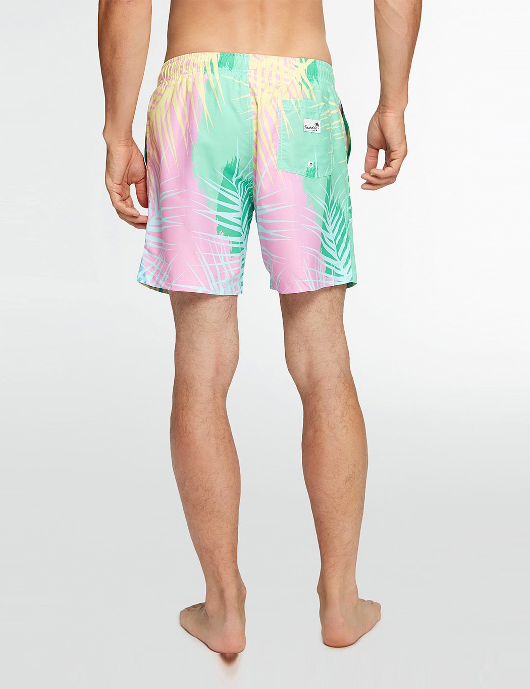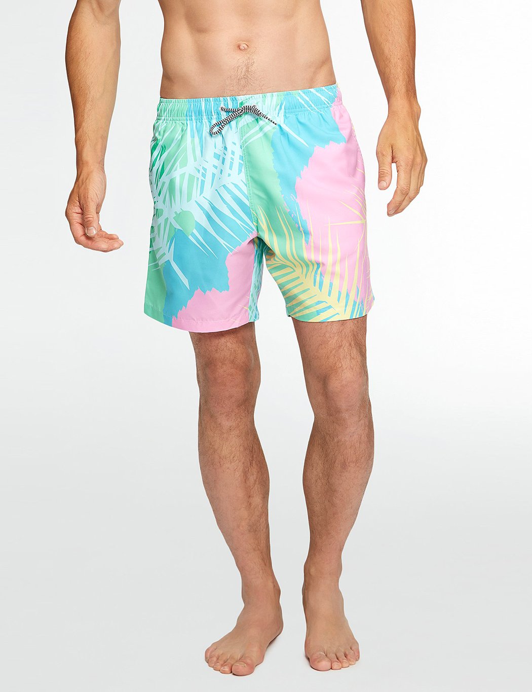 The Boardies Tropicano Allover palm leaf graphic swim shorts in Blue from the Boardies shorts Spring/Summer 2018 collection. Featuring Boardies signature super soft lightweight material, with elasticated waist with a drawstring and mesh swimmer lining.