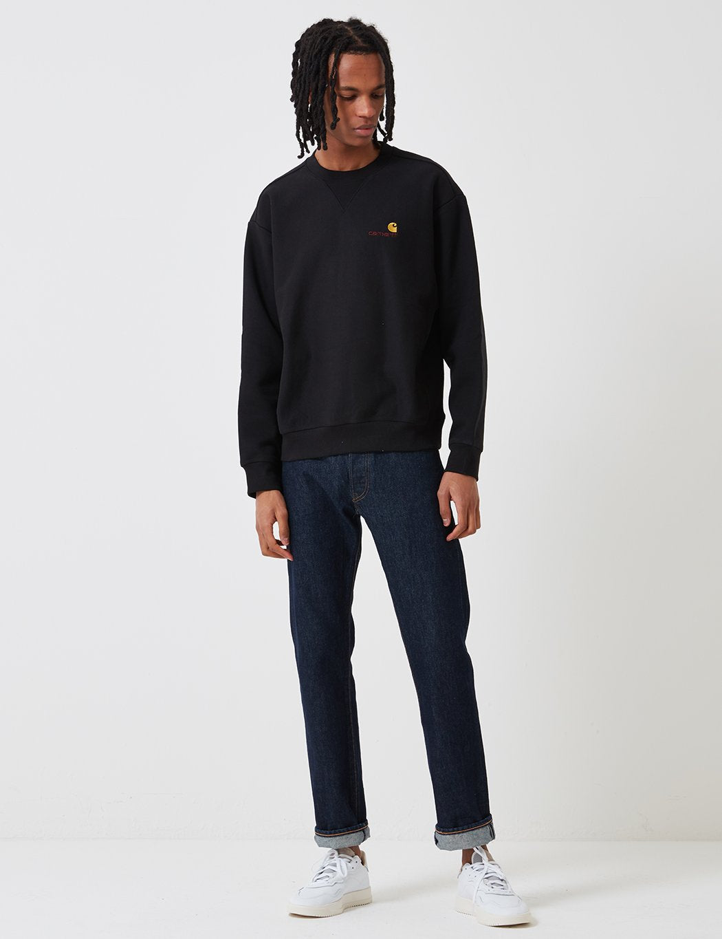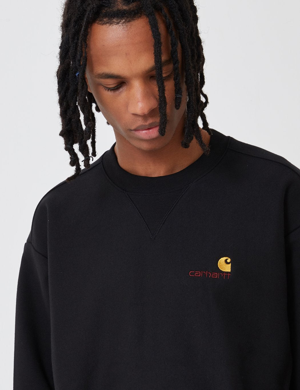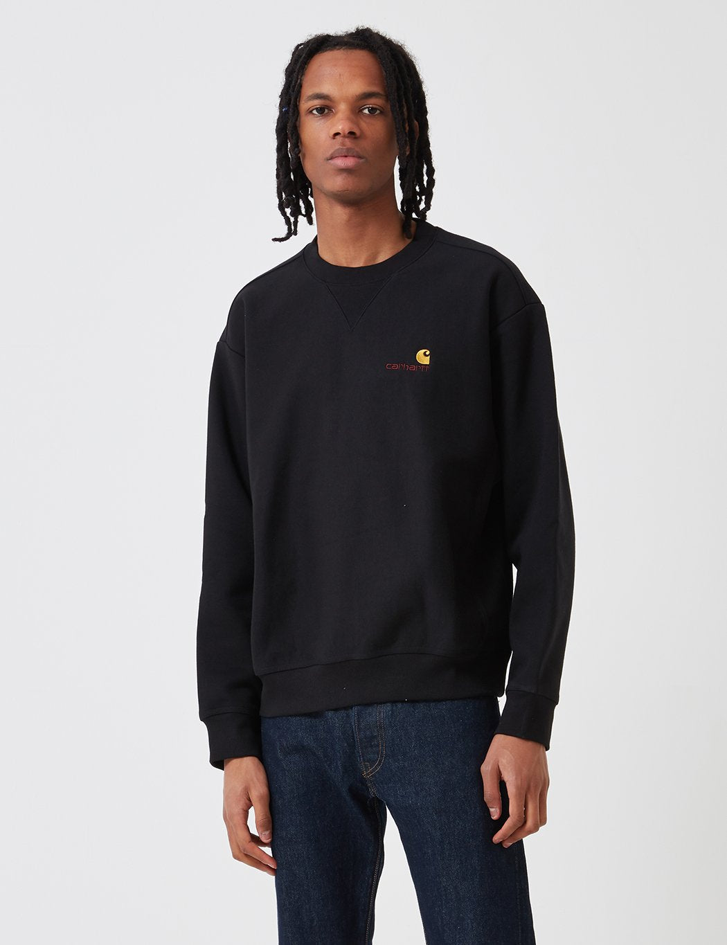 The Carhartt WIP American Script Sweatshirt from their SS19 Sweater Collection has a relaxed boxy shape. Made from a 12.3oz heavyweight cotton-poly jersey which has been garment washed in a timeless Black colour-way.