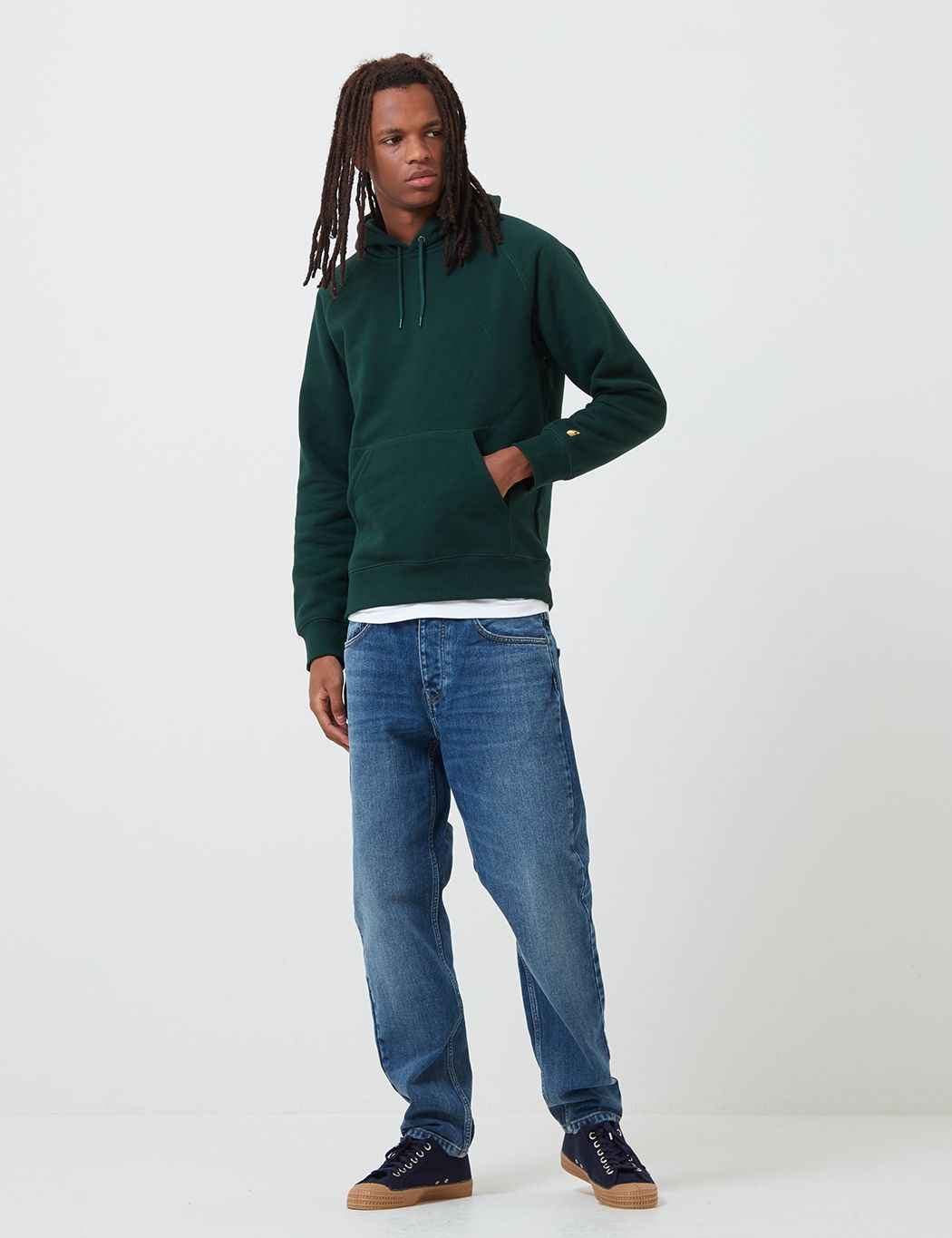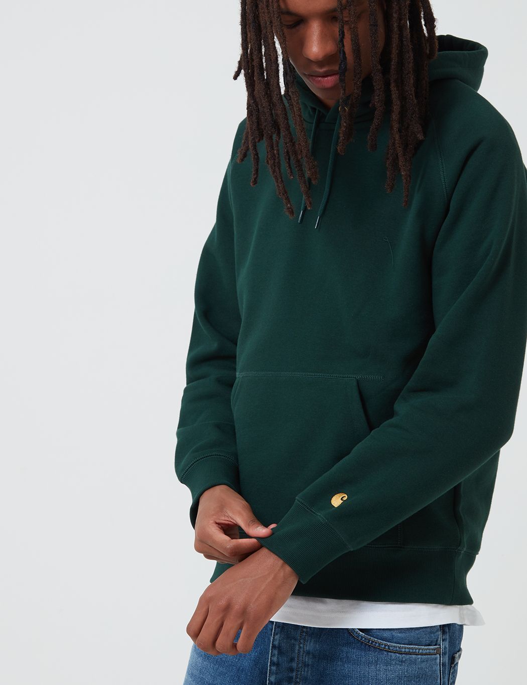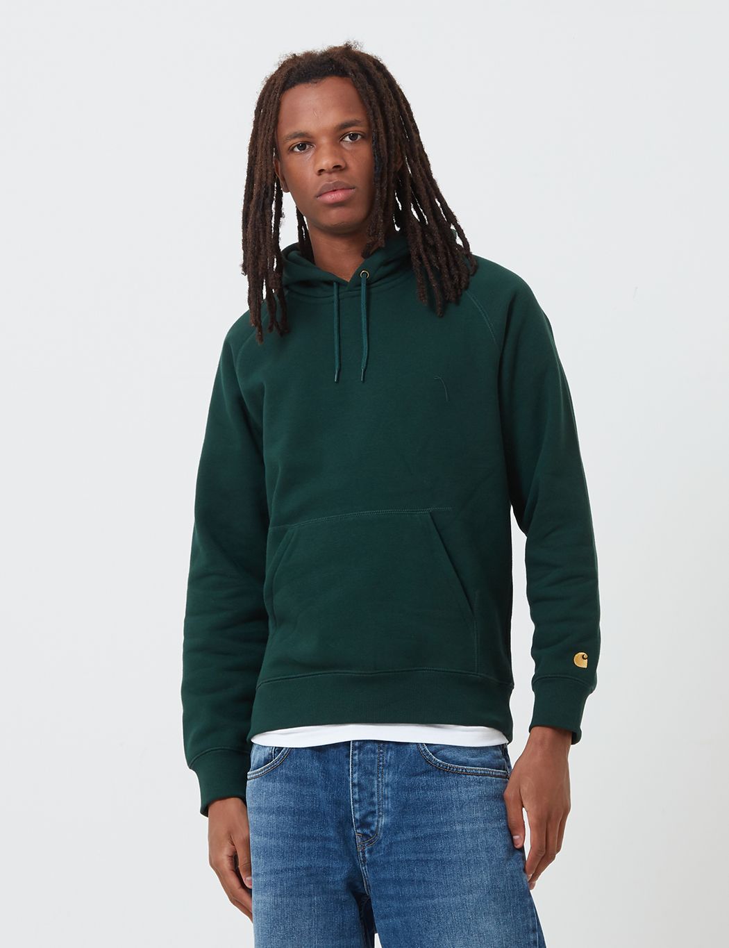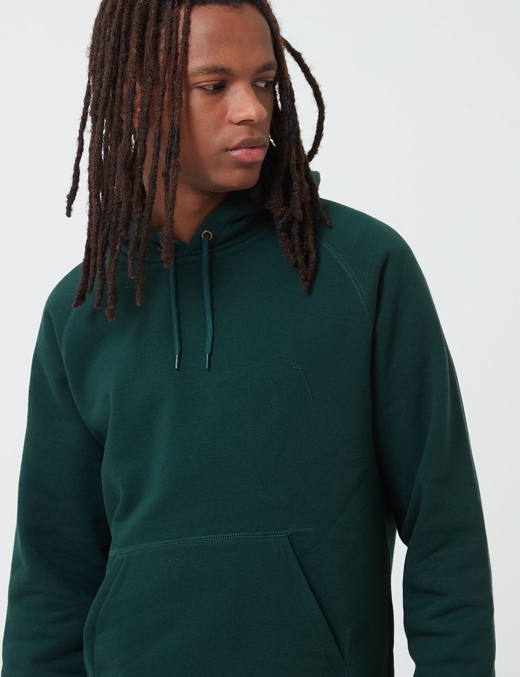 The Carhartt Chase hooded sweatshirt in Bottle Green from the Carhartt chase sweatshirts core collection.