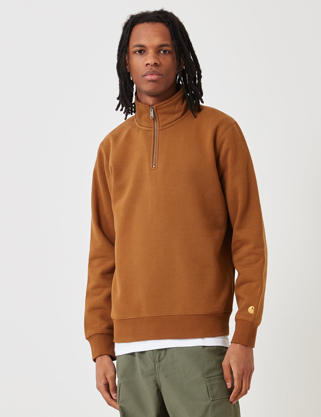 Carhartt-WIP Chase Quarter-Zip High Neck Sweatshirt - Hamilton Brown
