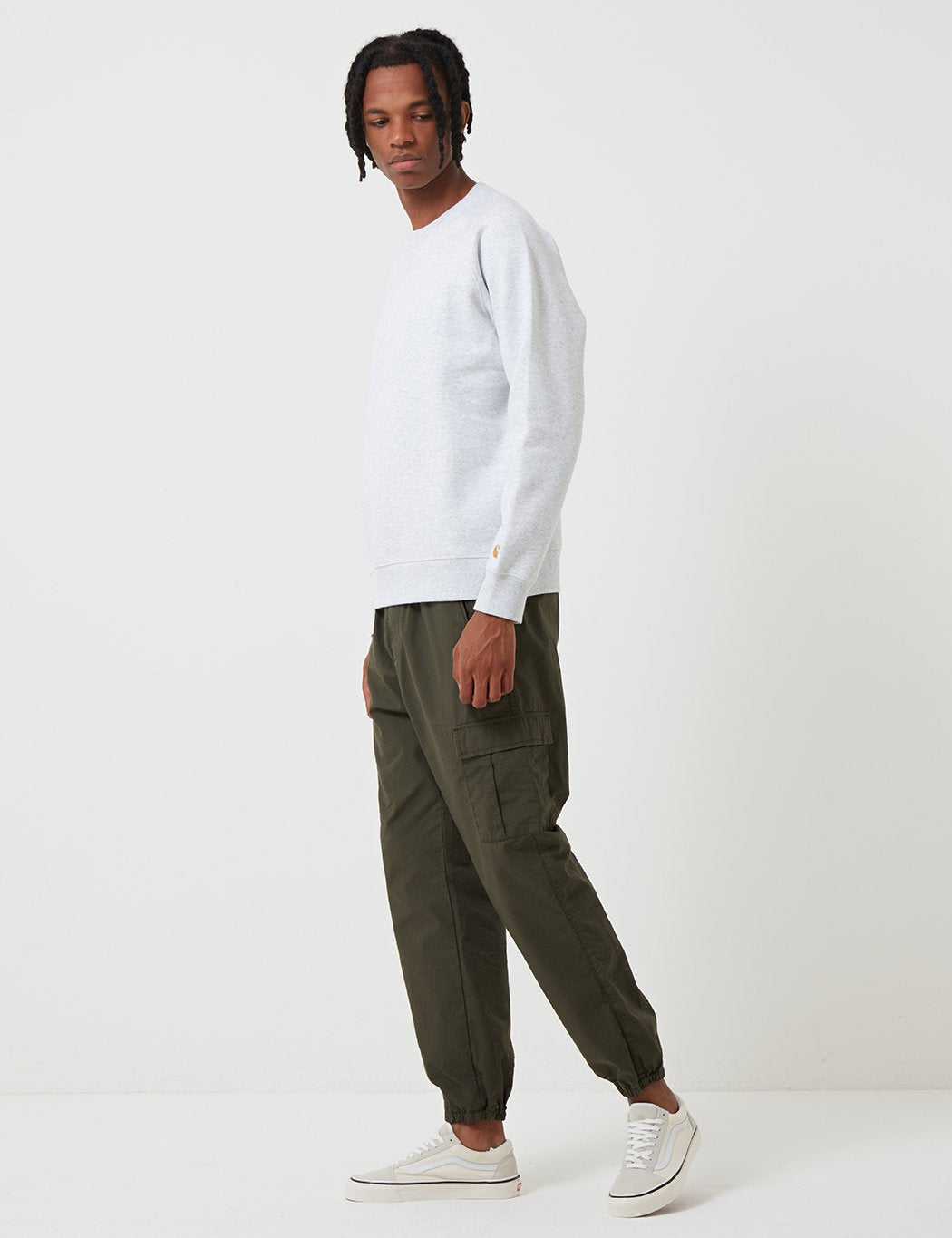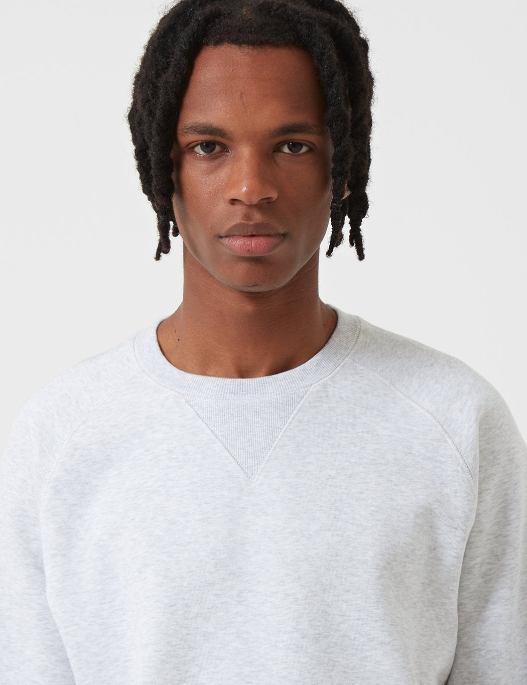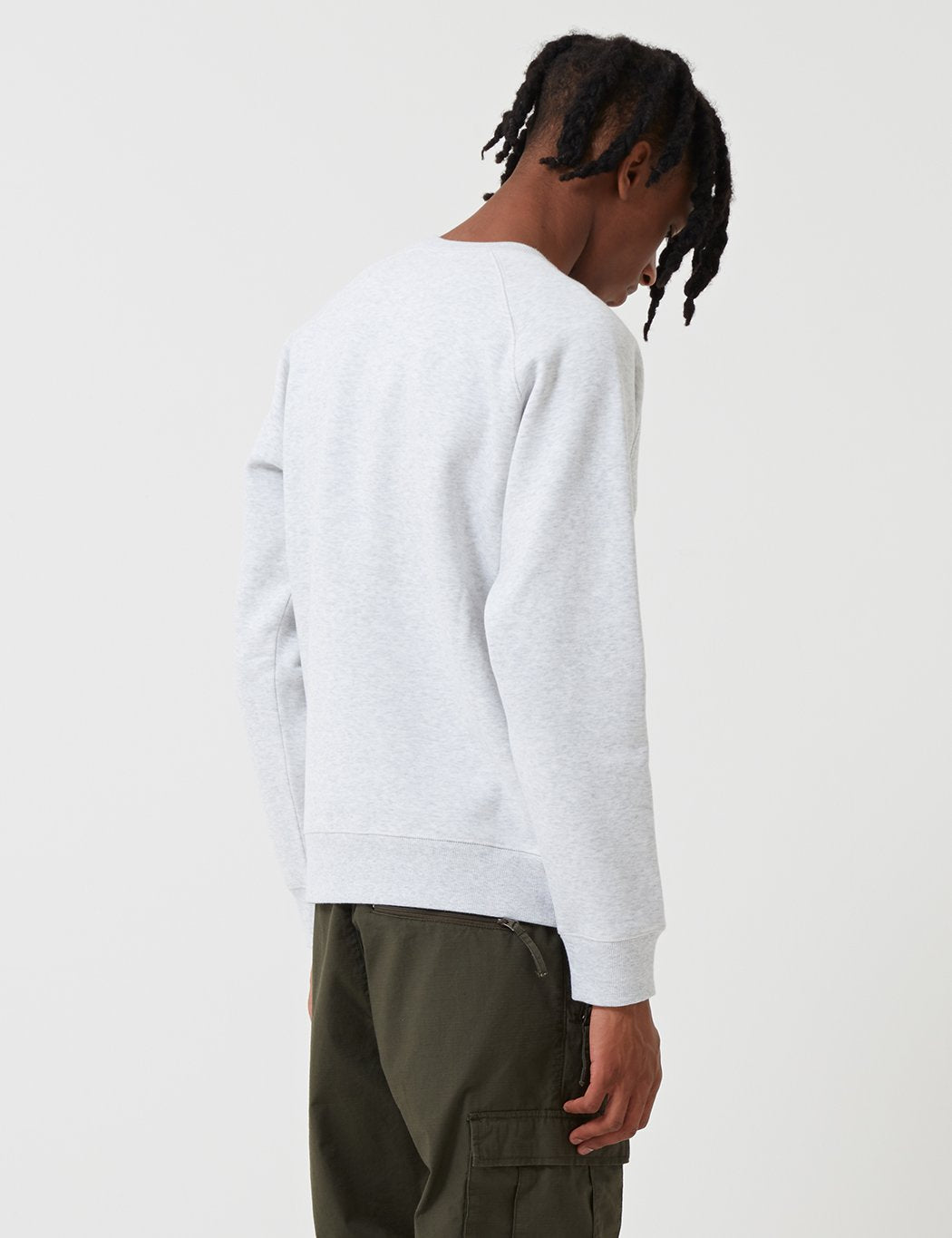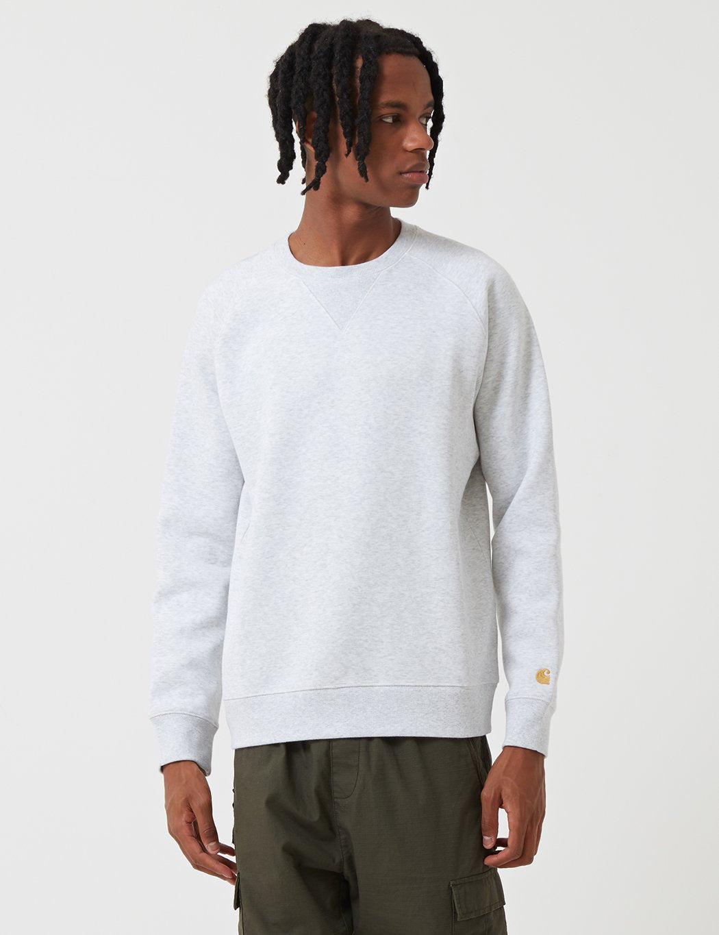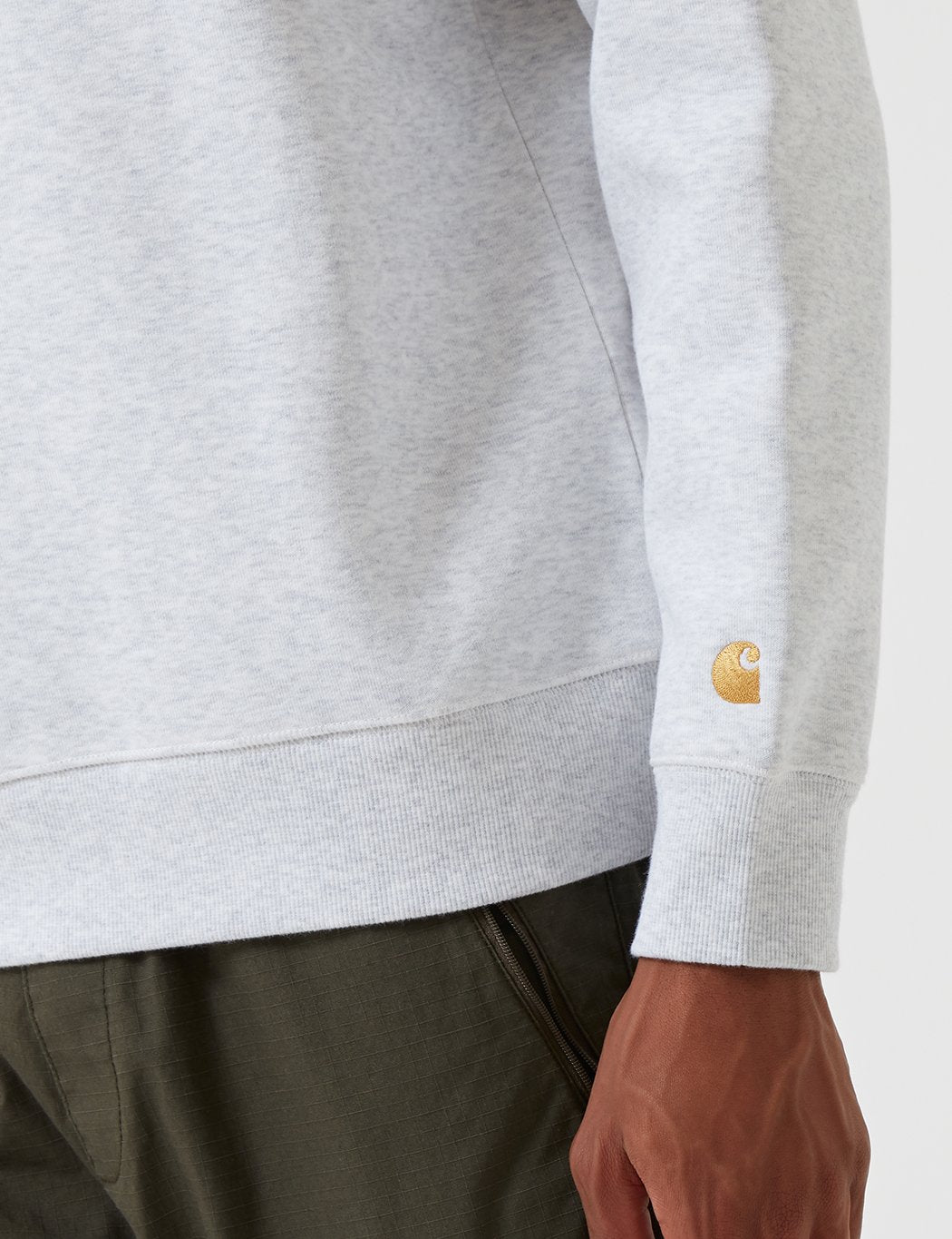 The Carhartt Chase sweatshirt in Ash Heather Grey with Gold embroidery from the Carhartt Chase sweat program.