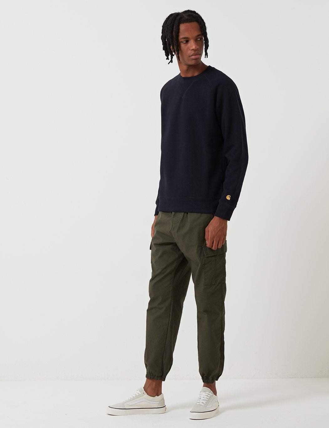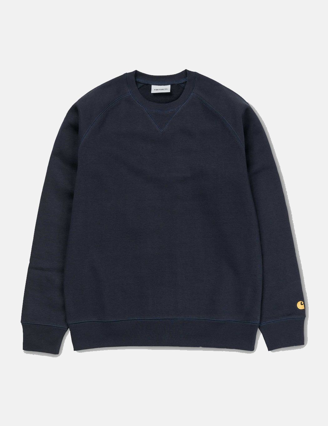 The Carhartt Chase sweatshirt in Dark Navy Blue with Gold embroidery from the Carhartt Chase sweat program.