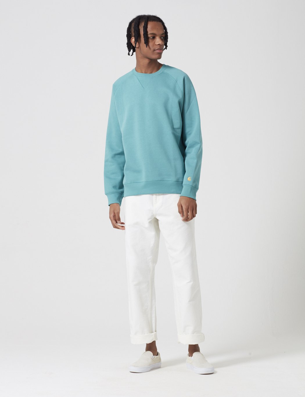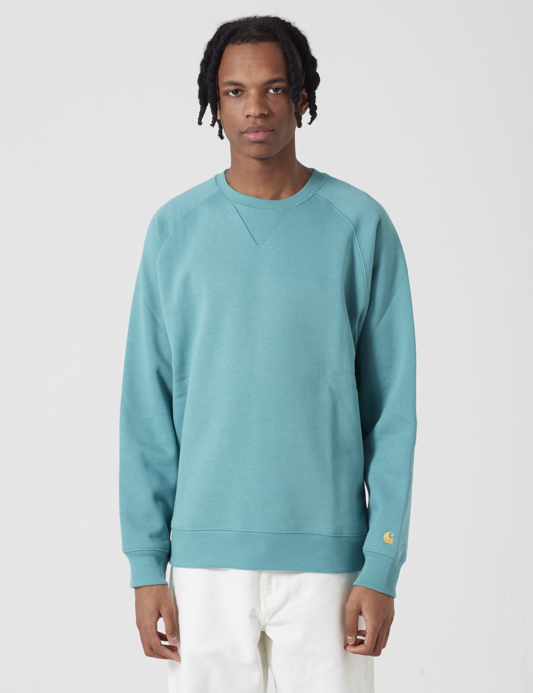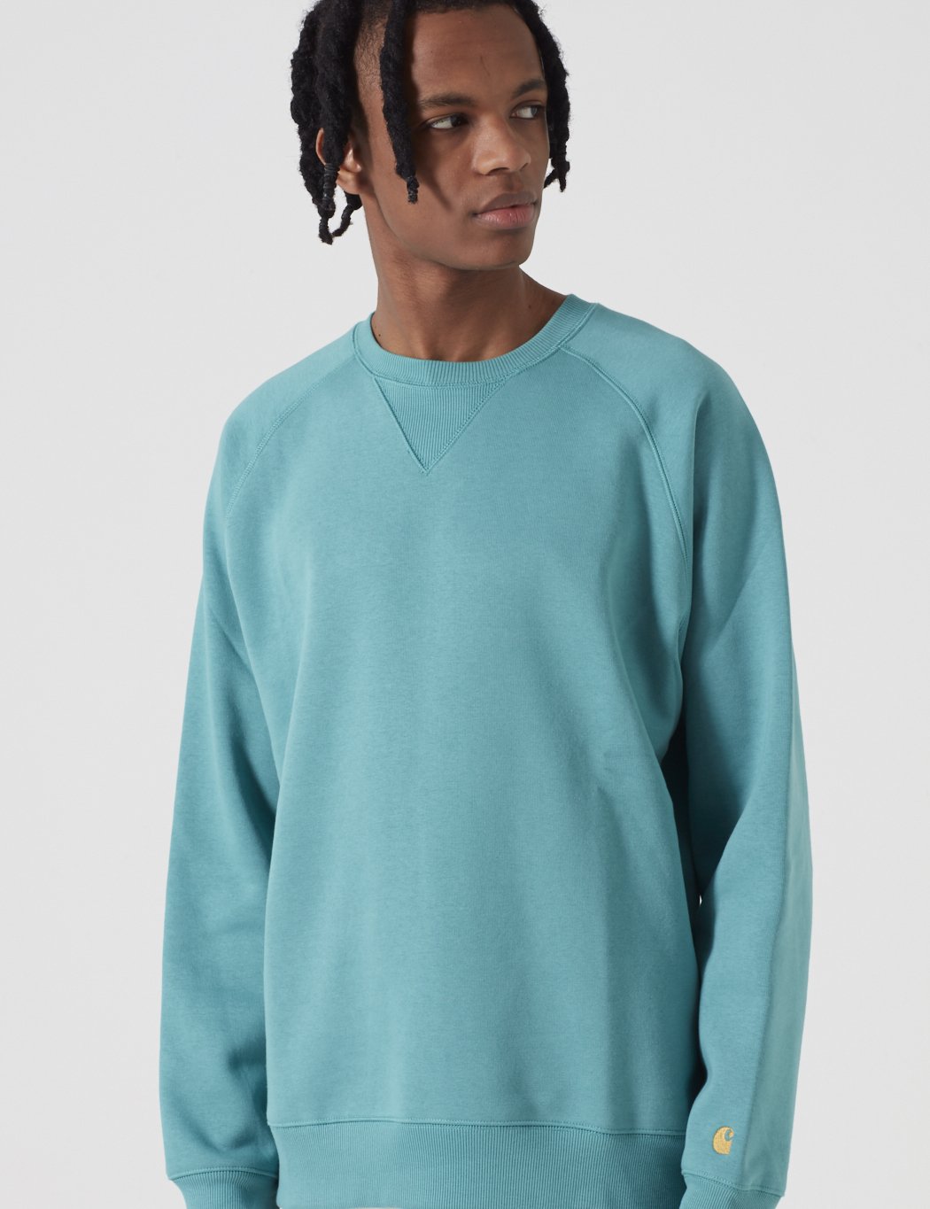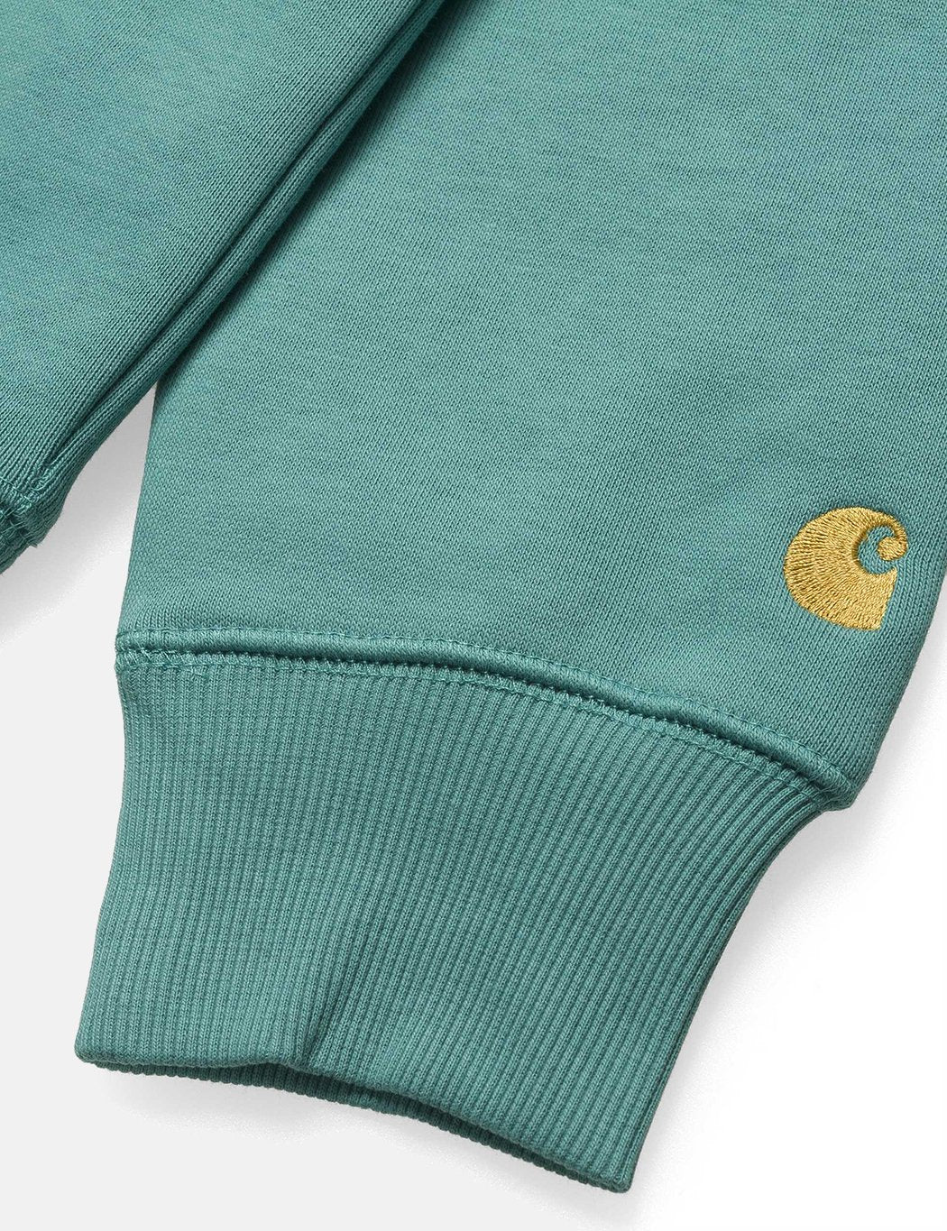 The Carhartt Chase sweatshirt in Teal Green with Gold embroidery from the Carhartt Chase sweat program.