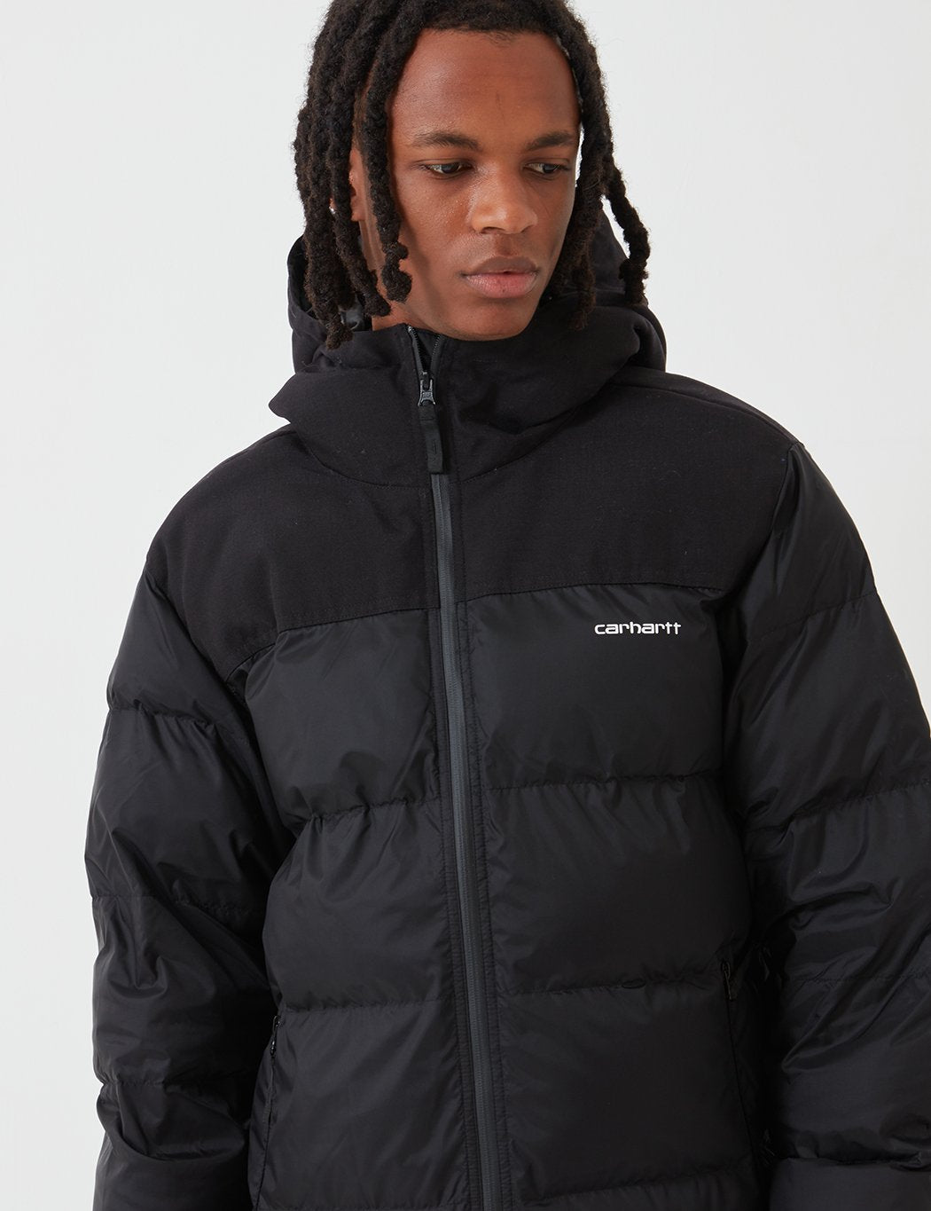 Fulfilling all your winter needs this brand new two-tone Carhartt jacket wadded with insulated faux down and finished with Carhartt script logo.