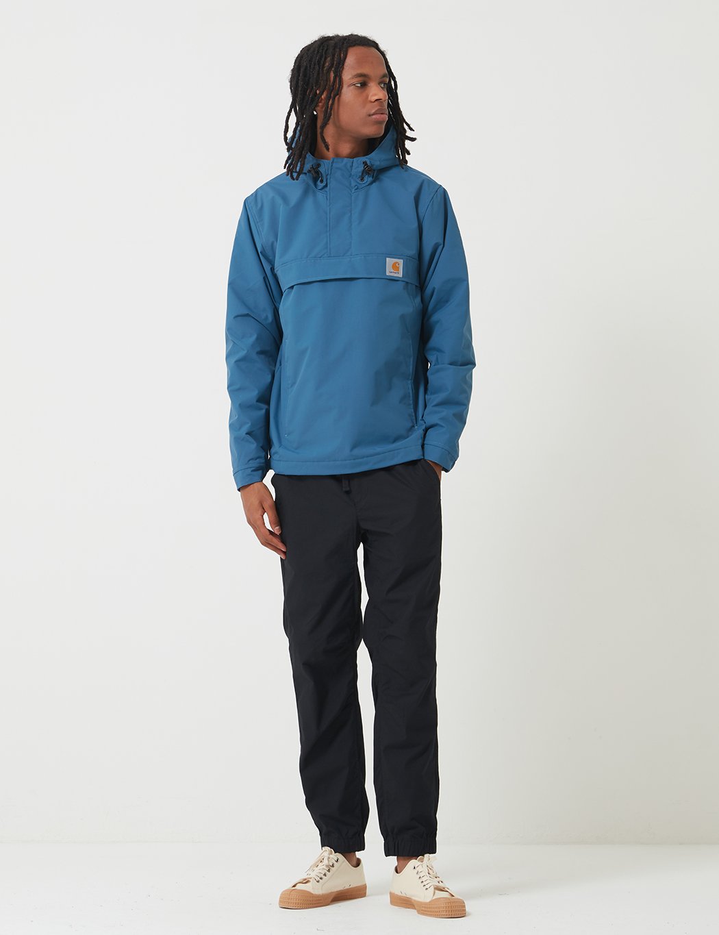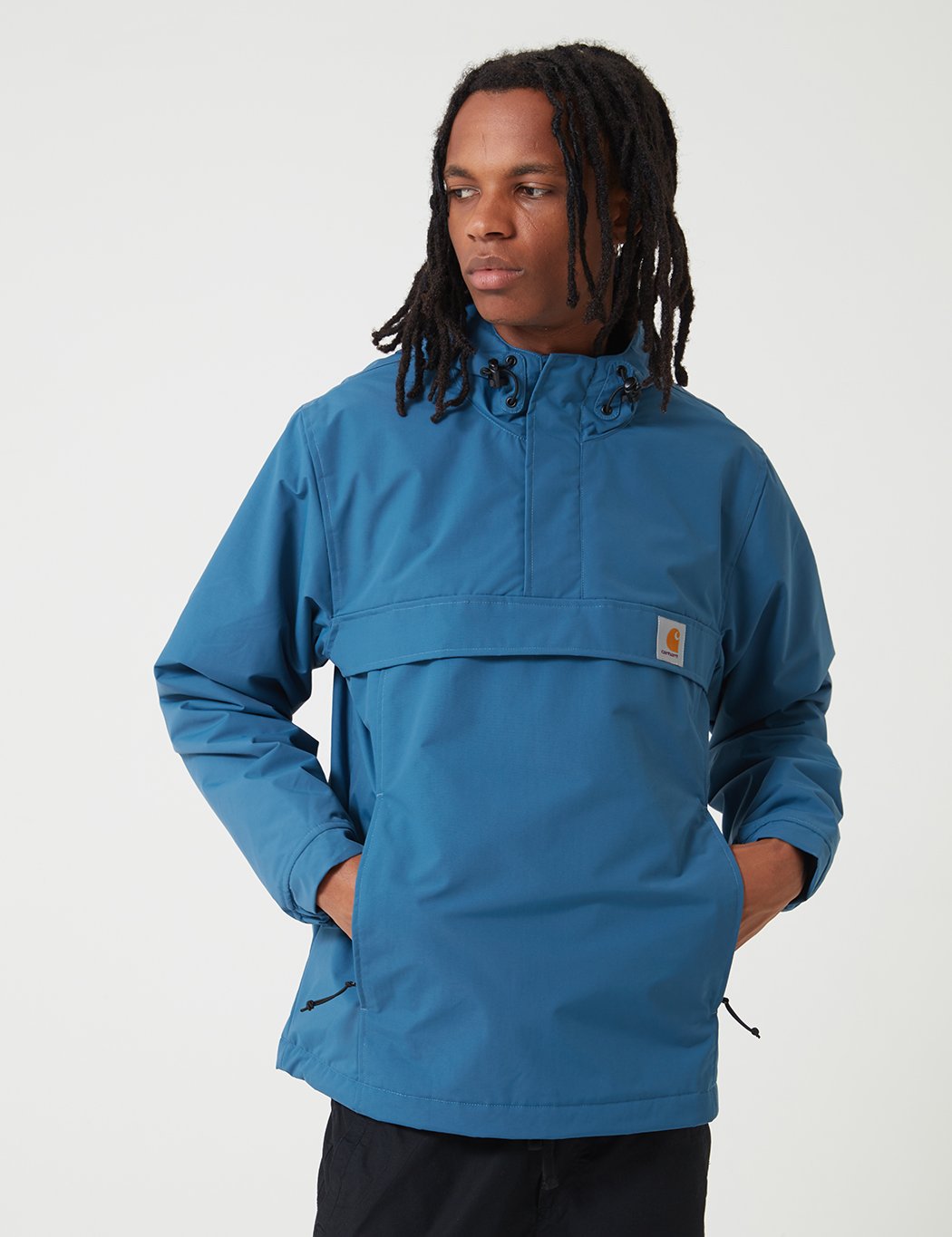 From Carhartt WIP the Nimbus Pullover Jacket in Prussian Blue with a fleece lining from the Carhartt Jackets Fall/Winter 2019 collection.