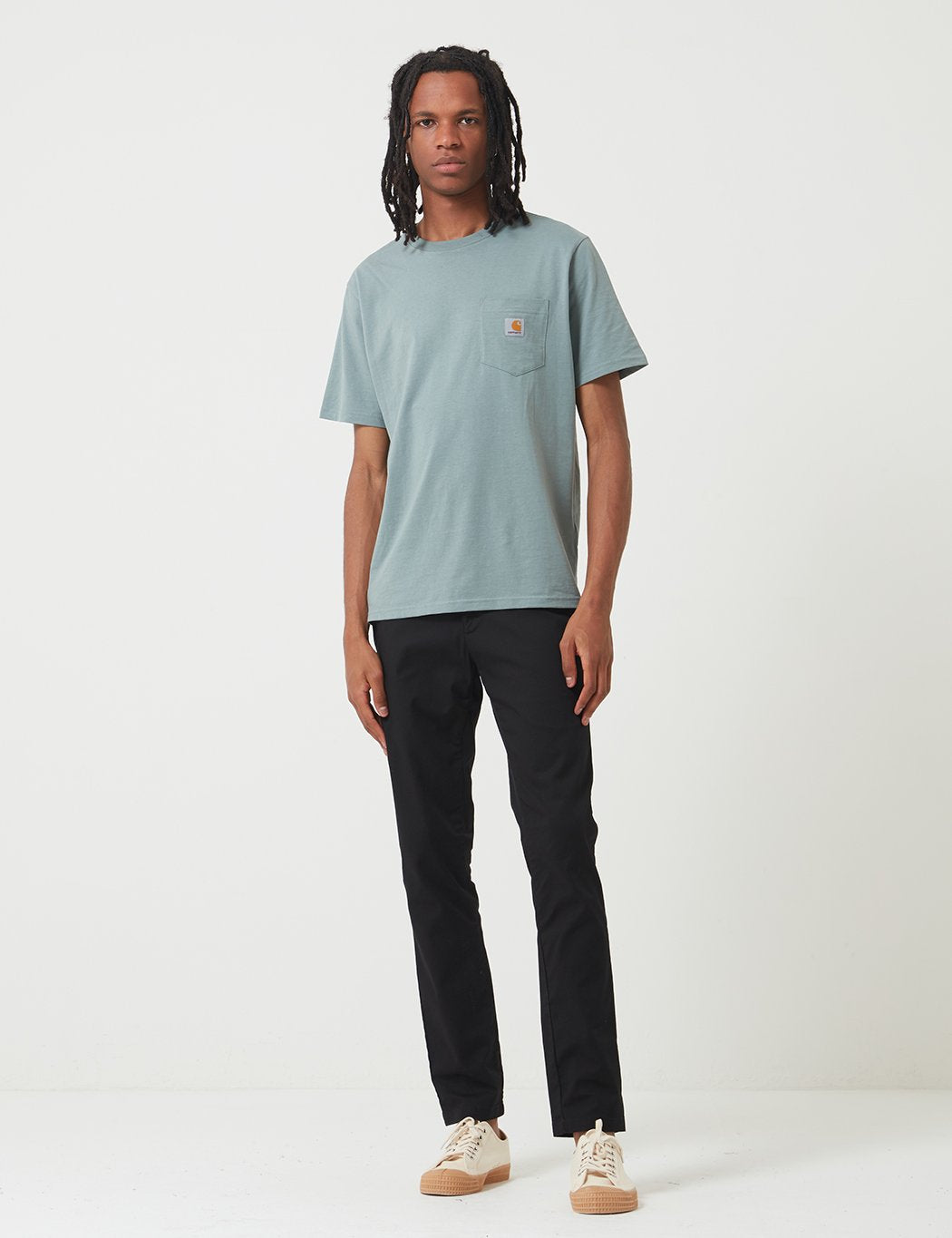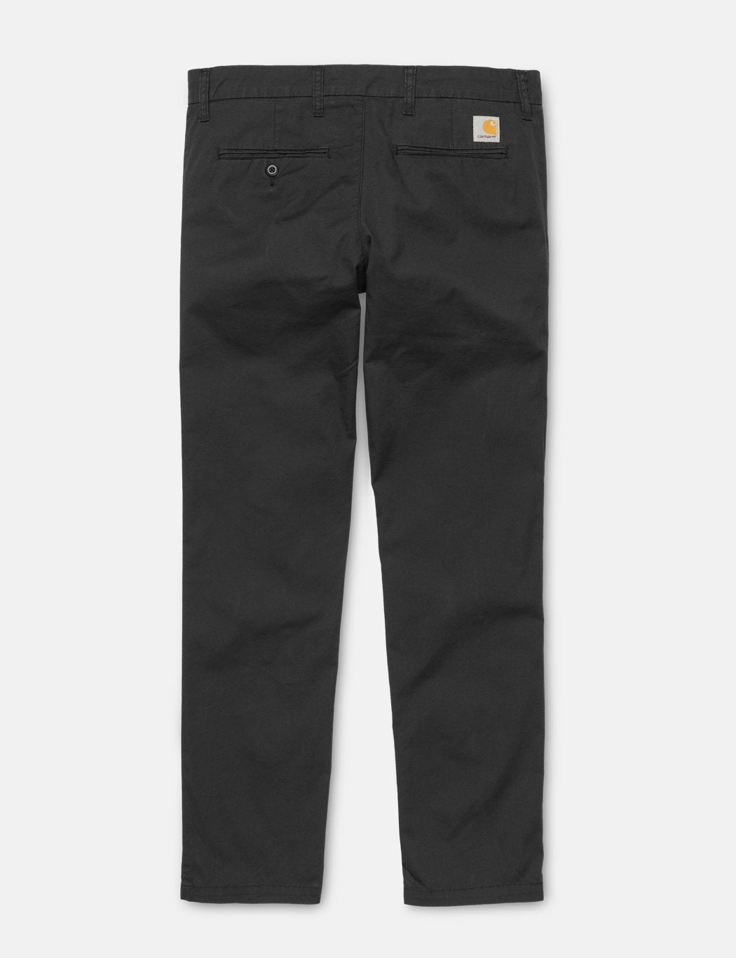 From Carhartt-WIP the classic Carhartt Sid Pant chinos in Black from the Carhartt Sid chinos core collection. The Carhartt Sid Pant is their slim tapered fit chino adorned with the classic woven brand label on the back.