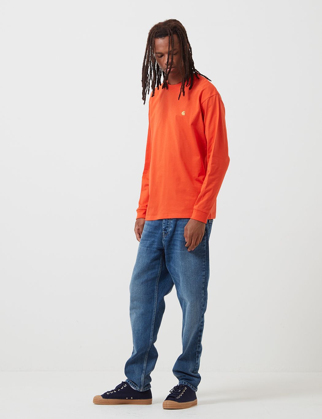 Carhartt-WIP Chase Long Sleeve T-Shirt - Safety Orange/Gold