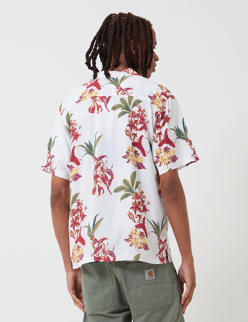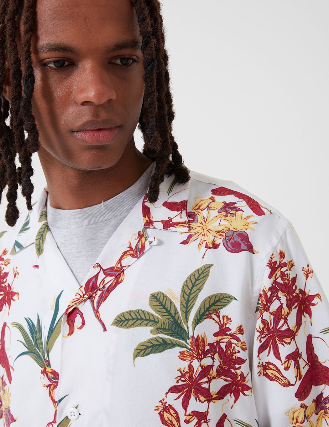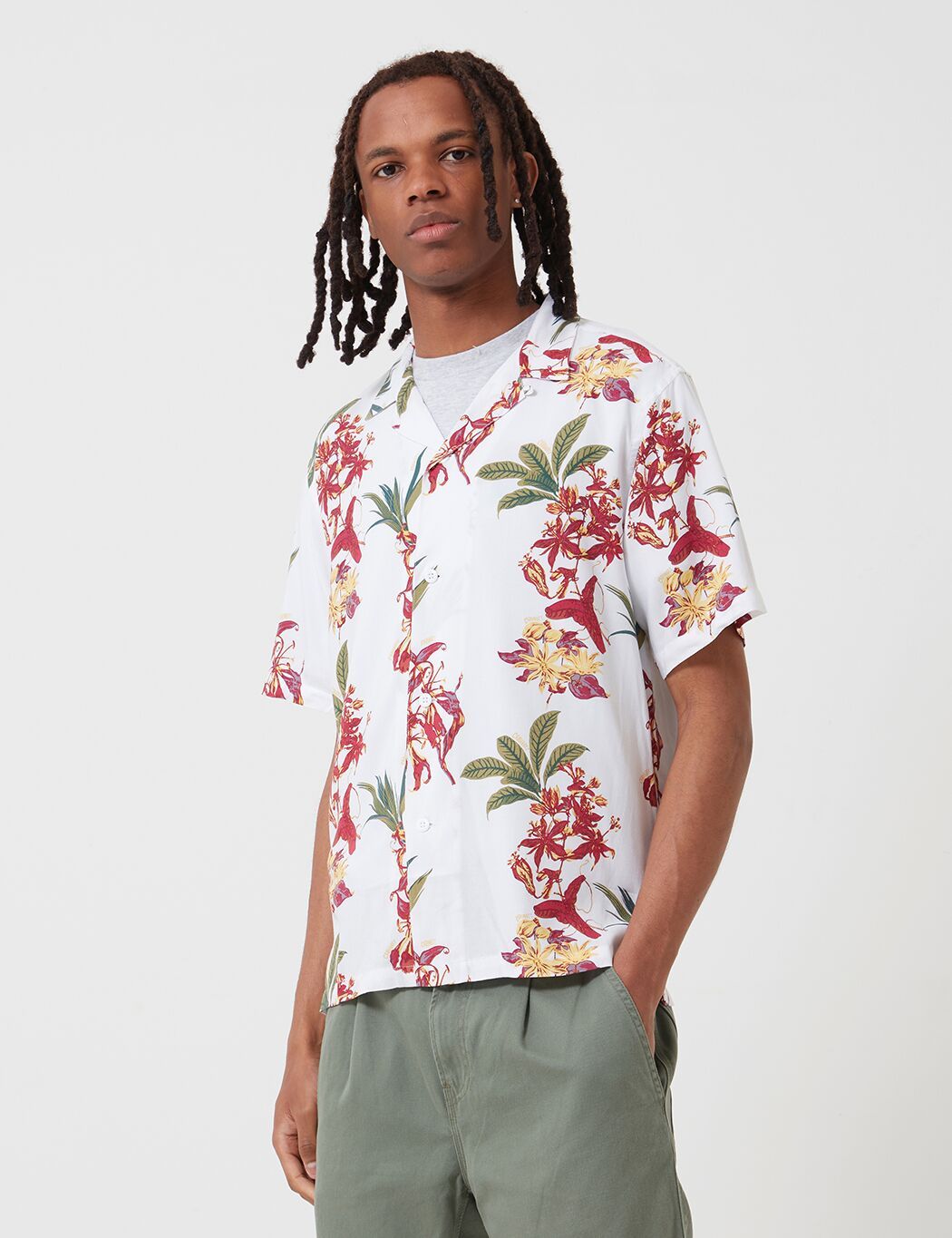 The Carhartt WIP Hawaiian Floral Short Sleeve Shirt in White from the Carhartt shirts Spring/Summer 2020 collection.