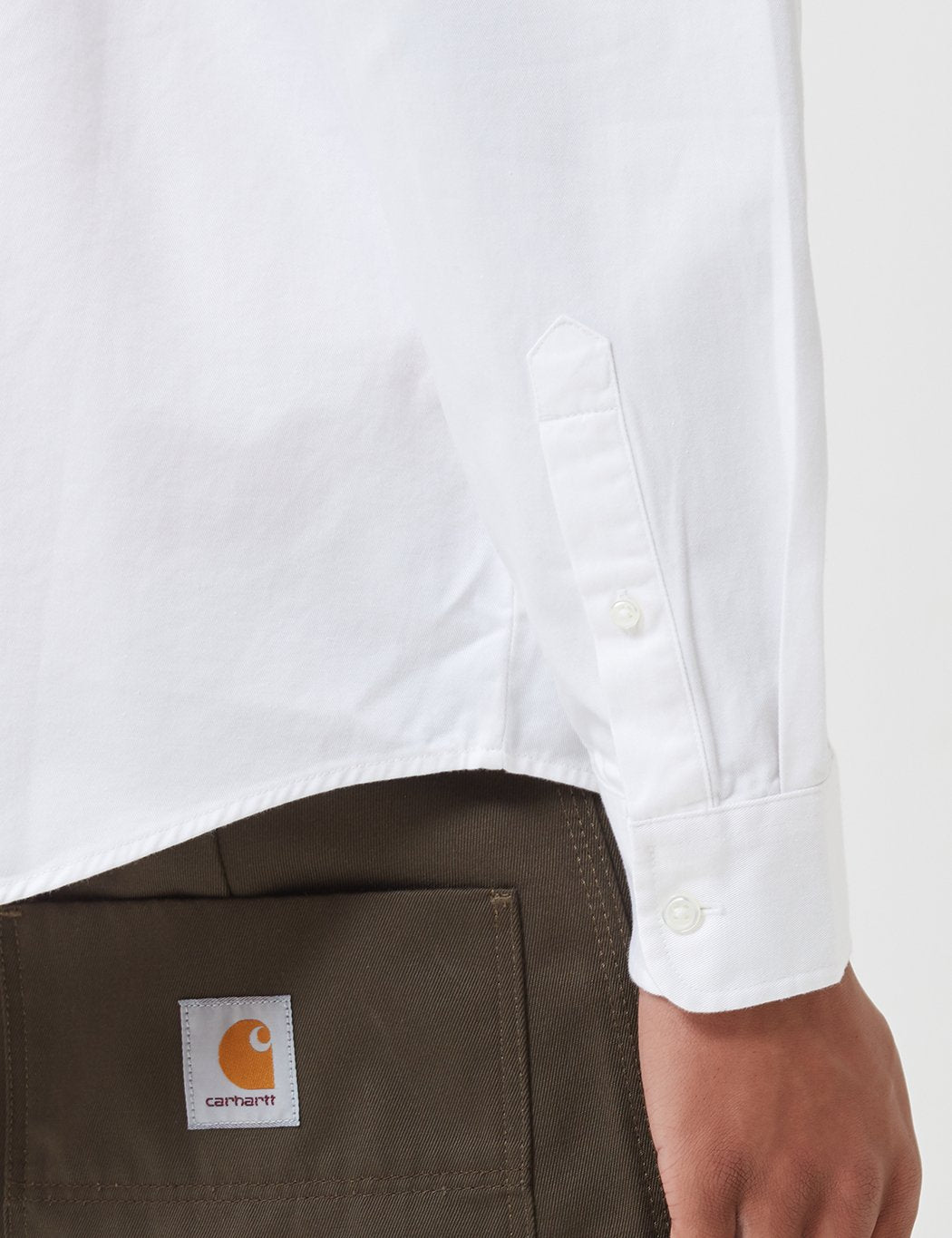 The Carhartt-WIP Madison shirt is a straight cut and pre-washed long sleeve shirt with a button strip. The Carhartt brand logo is embroidered on the chest of the high-quality shirt.