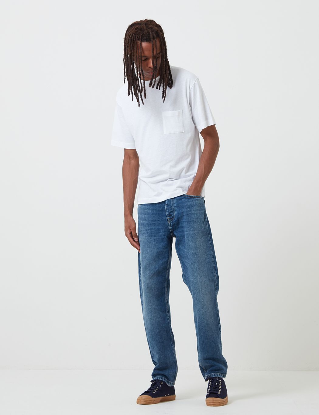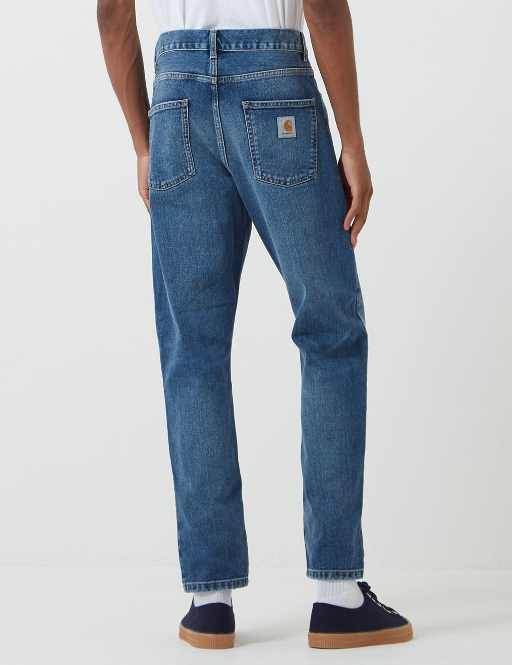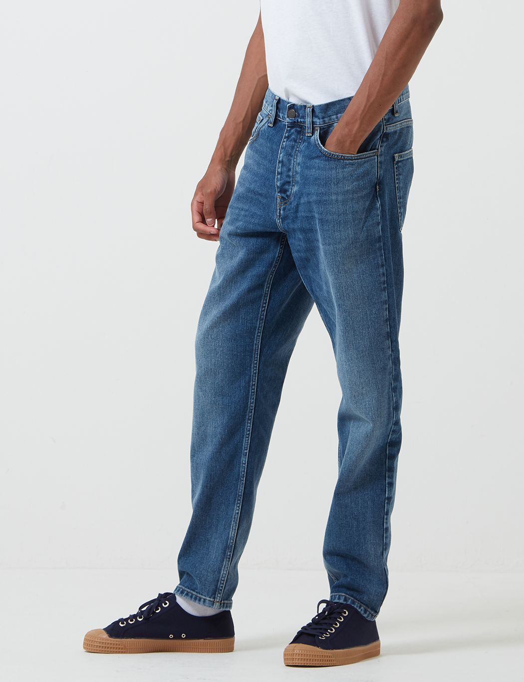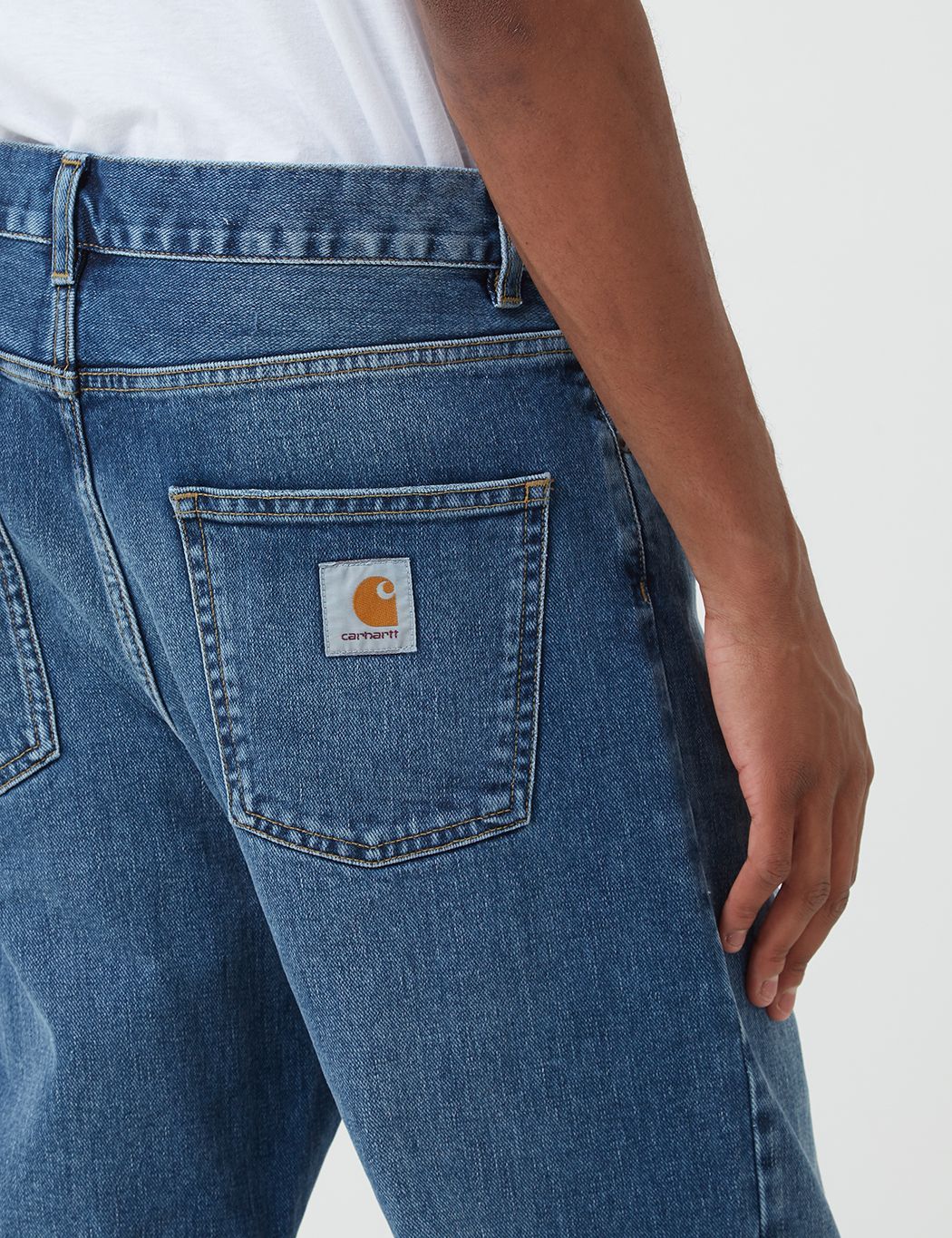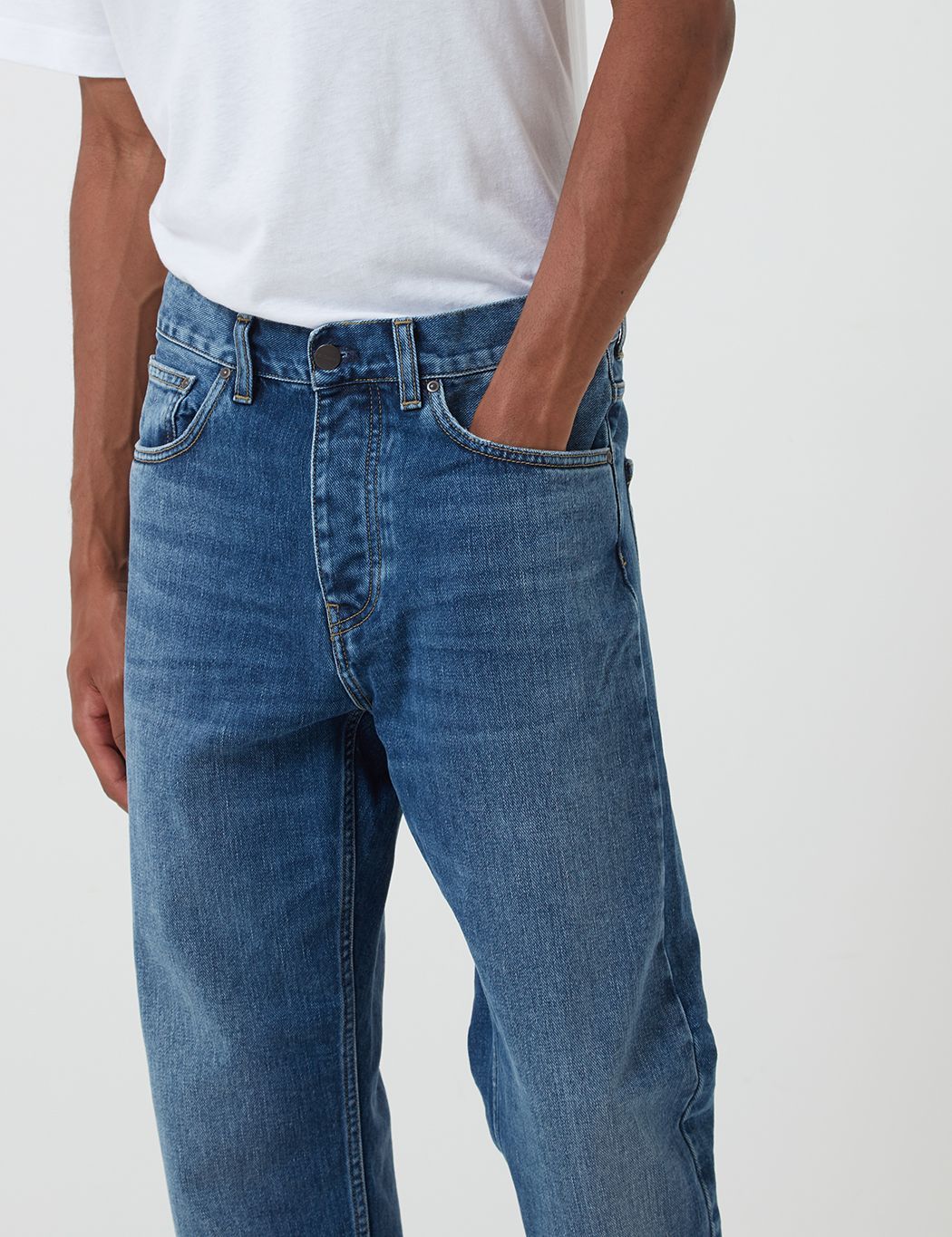 The Carhartt-WIP Newel Denim Pant Pant in mid worn wash blue from the Carhartt Sid jeans collection.
