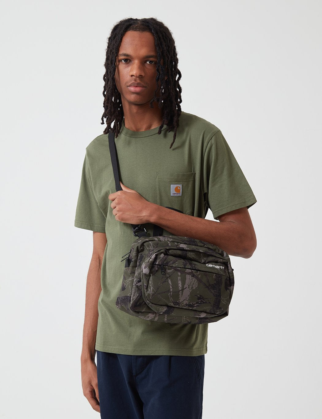 The Carhartt Work In Progress Payton shoulder bag in camo tree green from the Carhartt bumbags Spring Summer 2020 collection.
