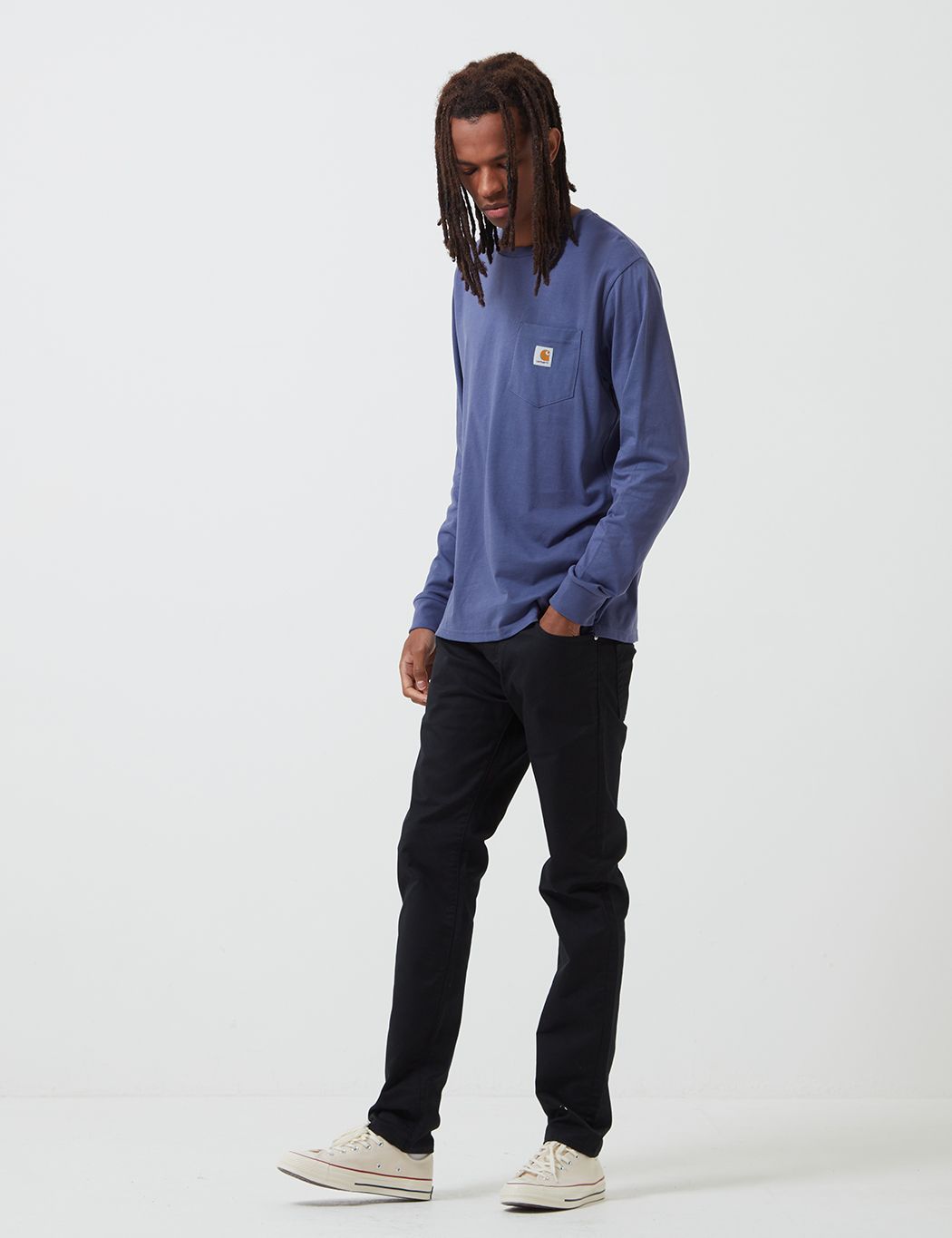 The Carhartt Pocket tee is a jersey one pocket long-sleeve t-shirt. The straight cut Carhartt Work in Progress t-shirt with crew neck is fitted with a chest pocket on the left side with a square logo label.