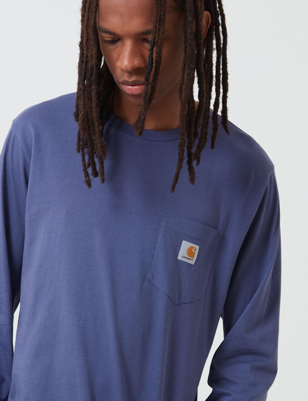 The Carhartt long sleeve pocket tshirt in cold viola from the Carhartt t-shirts collection.