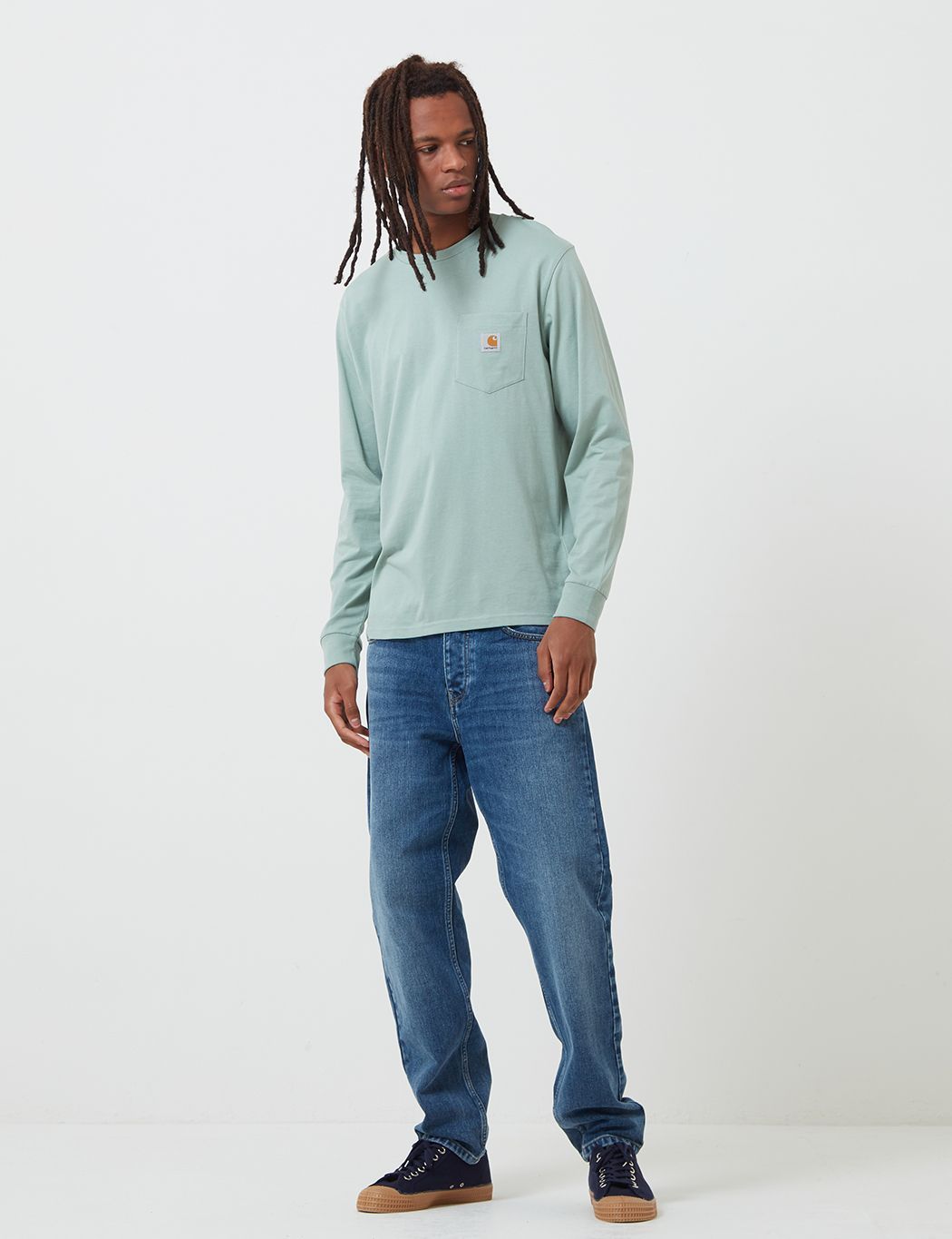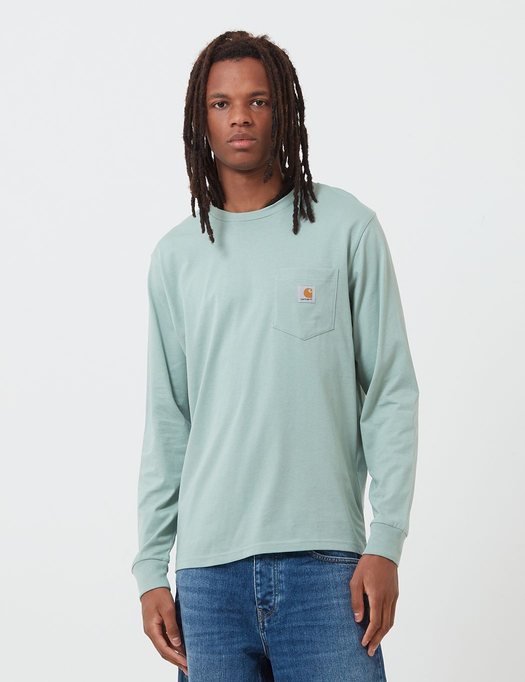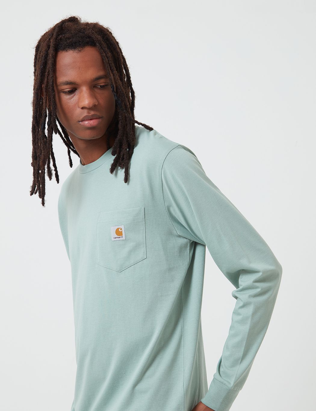 The Carhartt long sleeve pocket tshirt in frosted green from the Carhartt t-shirts collection.