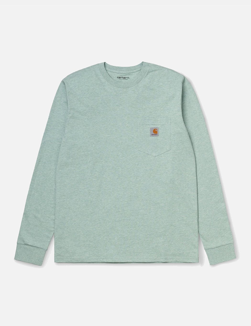 The Carhartt long sleeve pocket tshirt in zola heather green from the Carhartt t-shirts Spring/Summer 2020 collection.