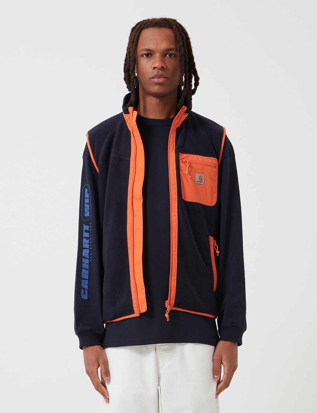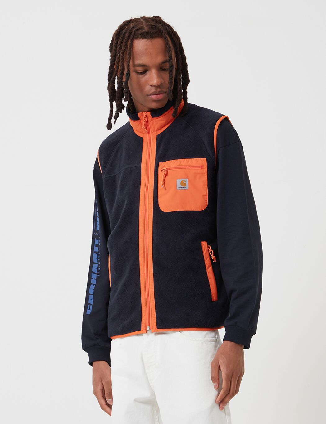 The Carhartt WIP Prentis Vest Liner in Dark Navy/Clockwork from the Carhartt WIP Spring Summer 2020 outwear collection.