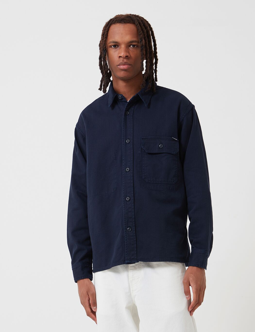 The Carhartt Reno long sleeve Colour Denim Shirt in Dark Navy Blue from the Carhartt shirts Spring/Summer 2020 collection.