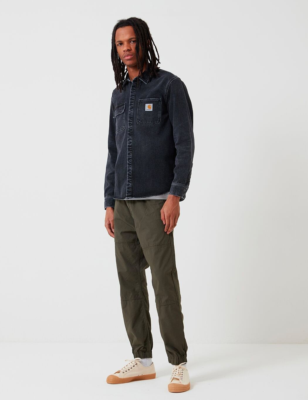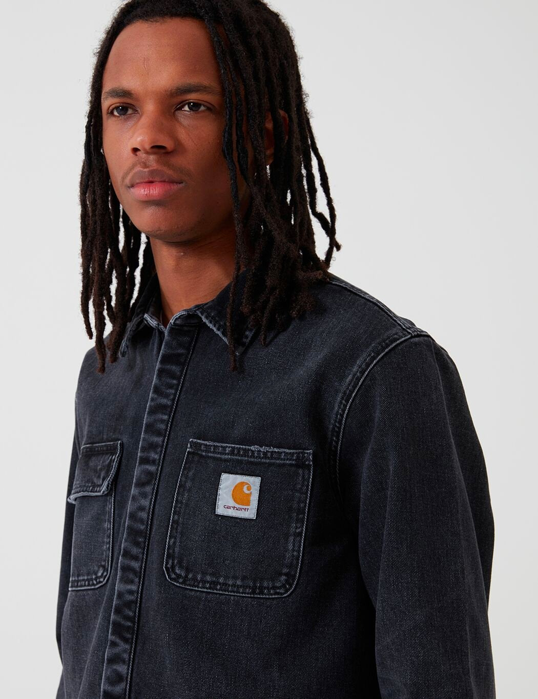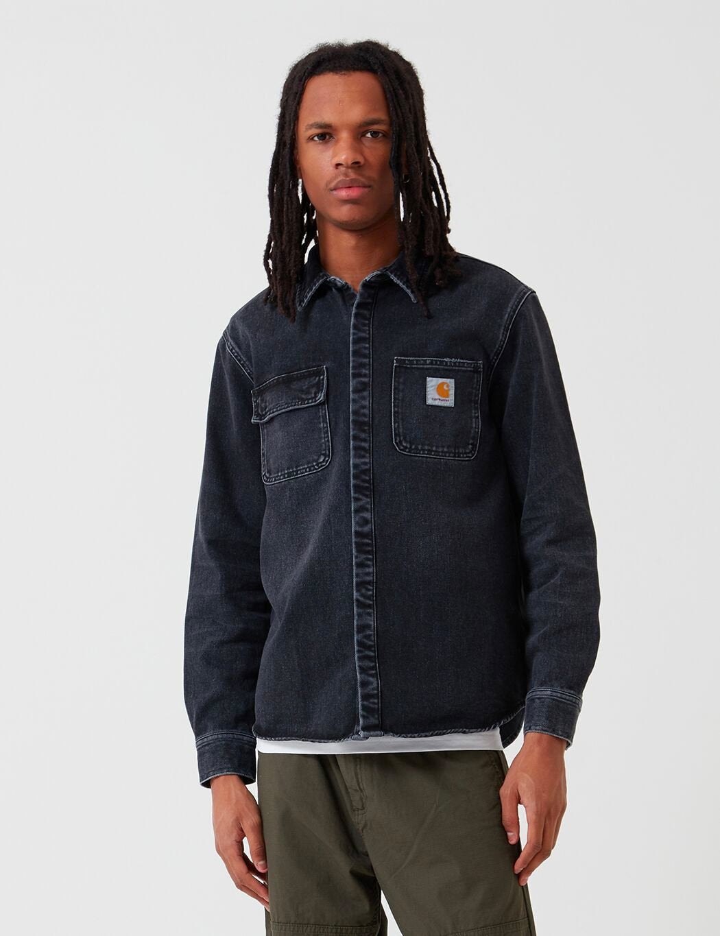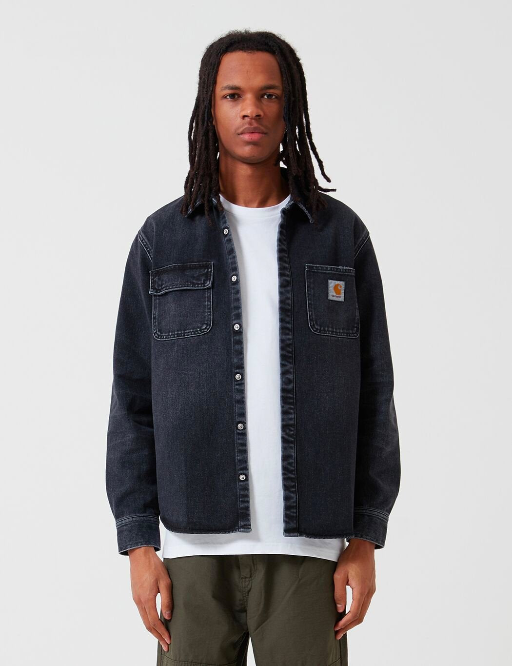The Carhartt Salinac Denim Shirt Jacket in Black, mid worn wash from the Carhartt Shirts Spring/Summer 2019 collection.