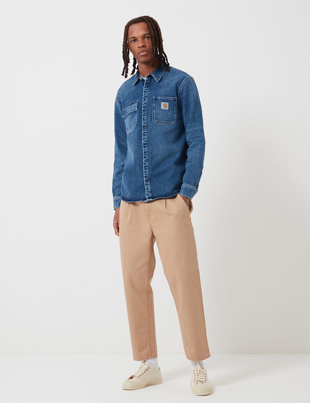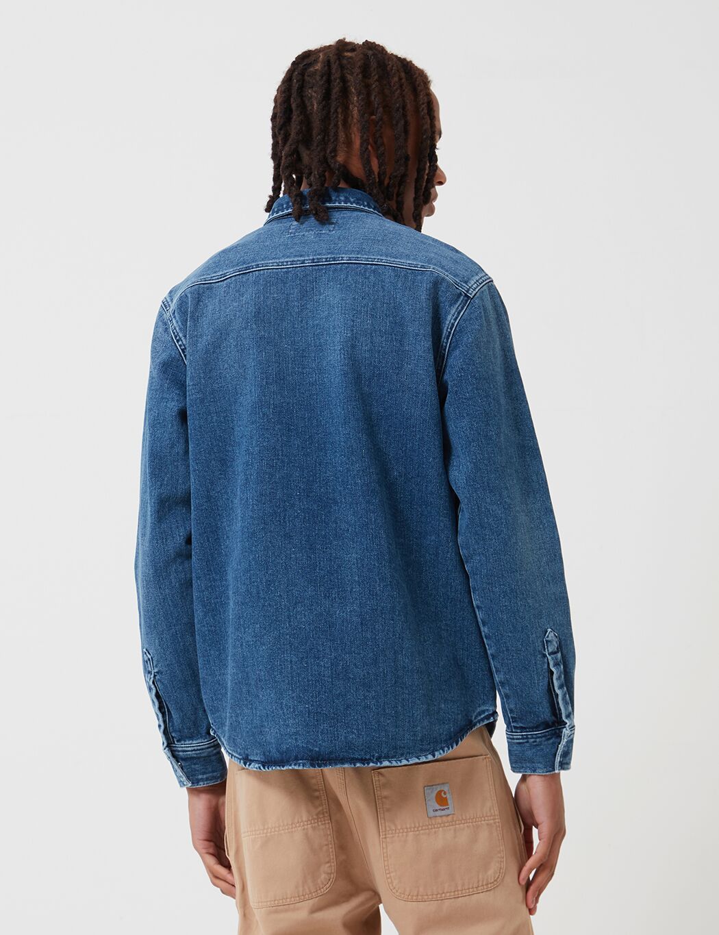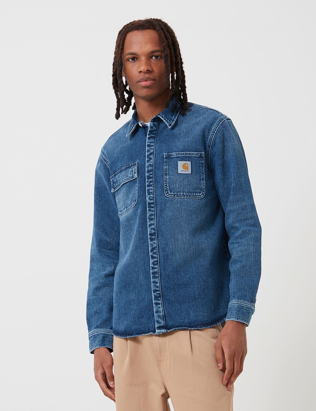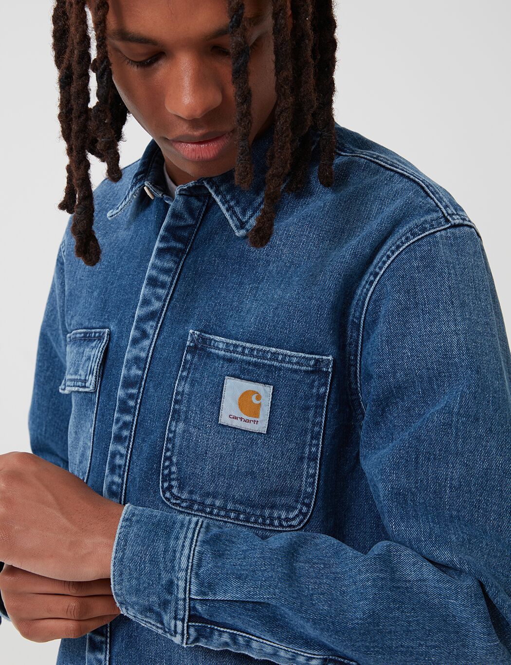 The Carhartt Salinac Denim Shirt Jacket in Blue, Mid Worn Wash from the Carhartt Shirts Spring/Summer 2019 collection.