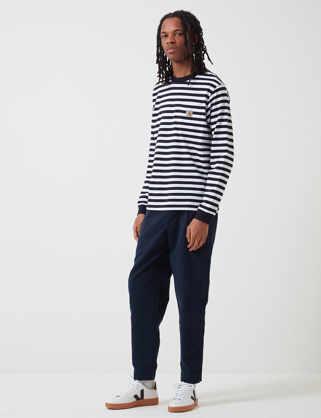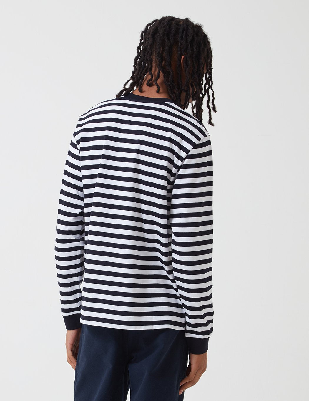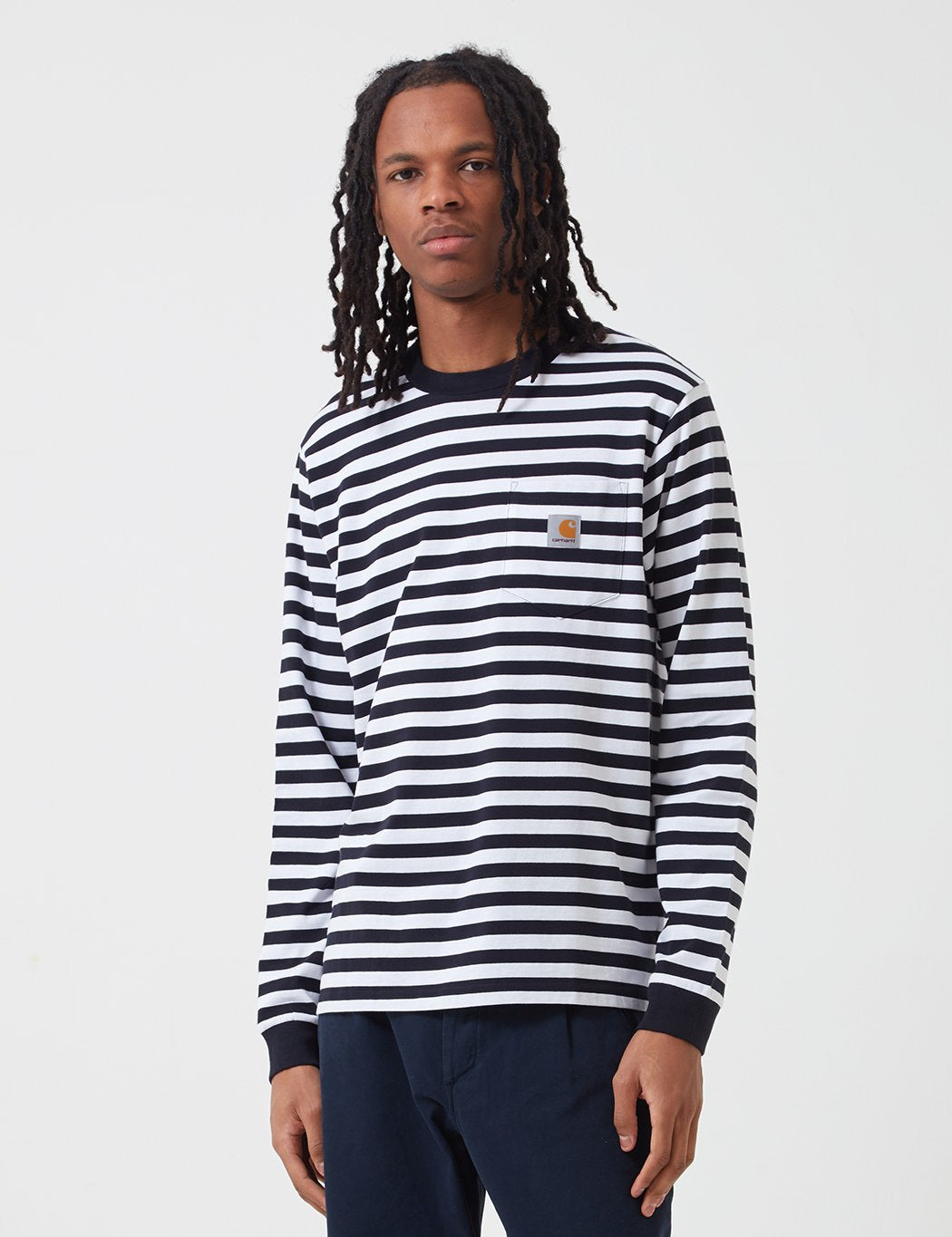 Carhartt-WIP Scotty Long Sleeve Pocket T-Shirt (Stripe) - Dark Navy Blue/White