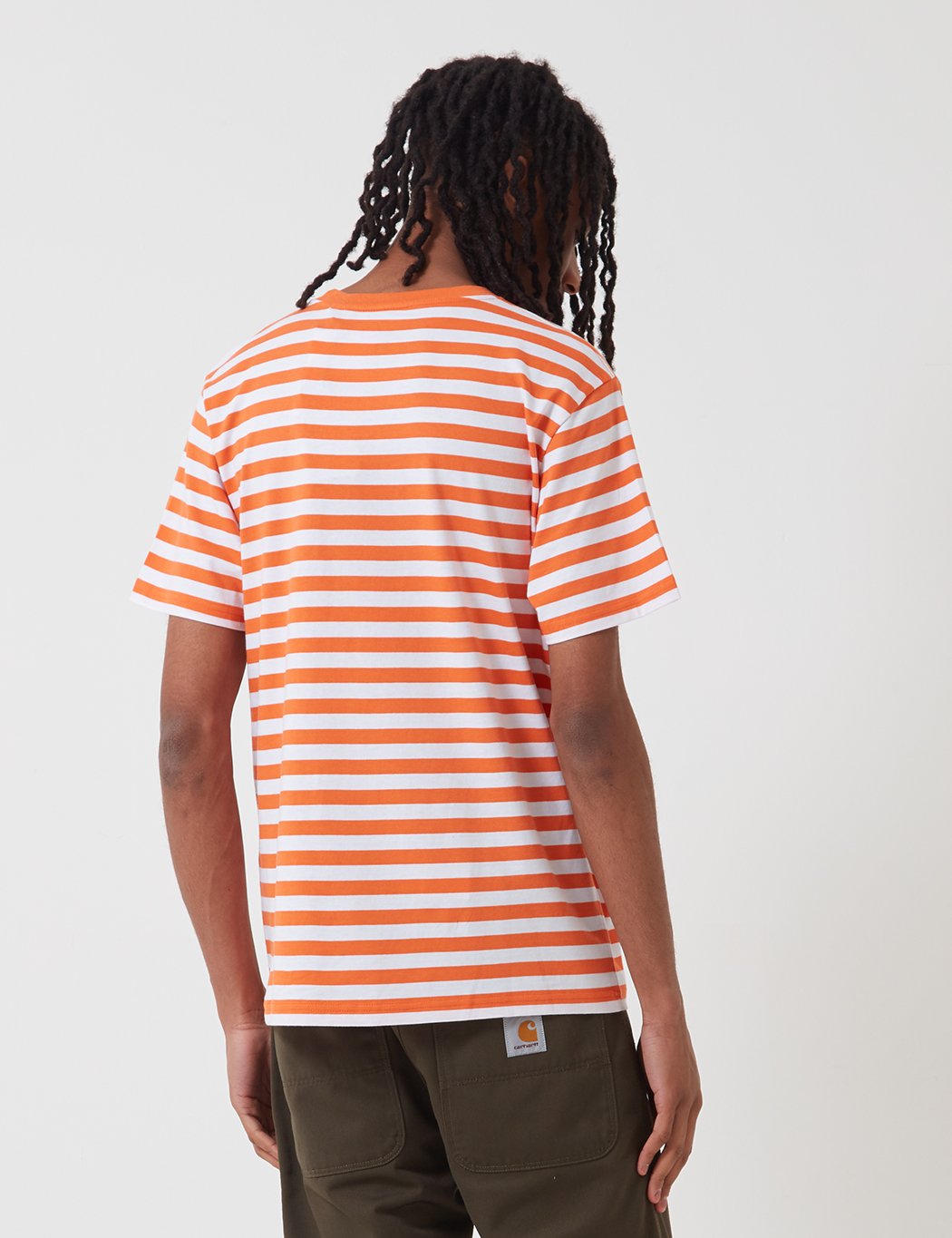 Carhartt-WIP Scotty Pocket T-Shirt (Stripe) - Clockwork Orange/White