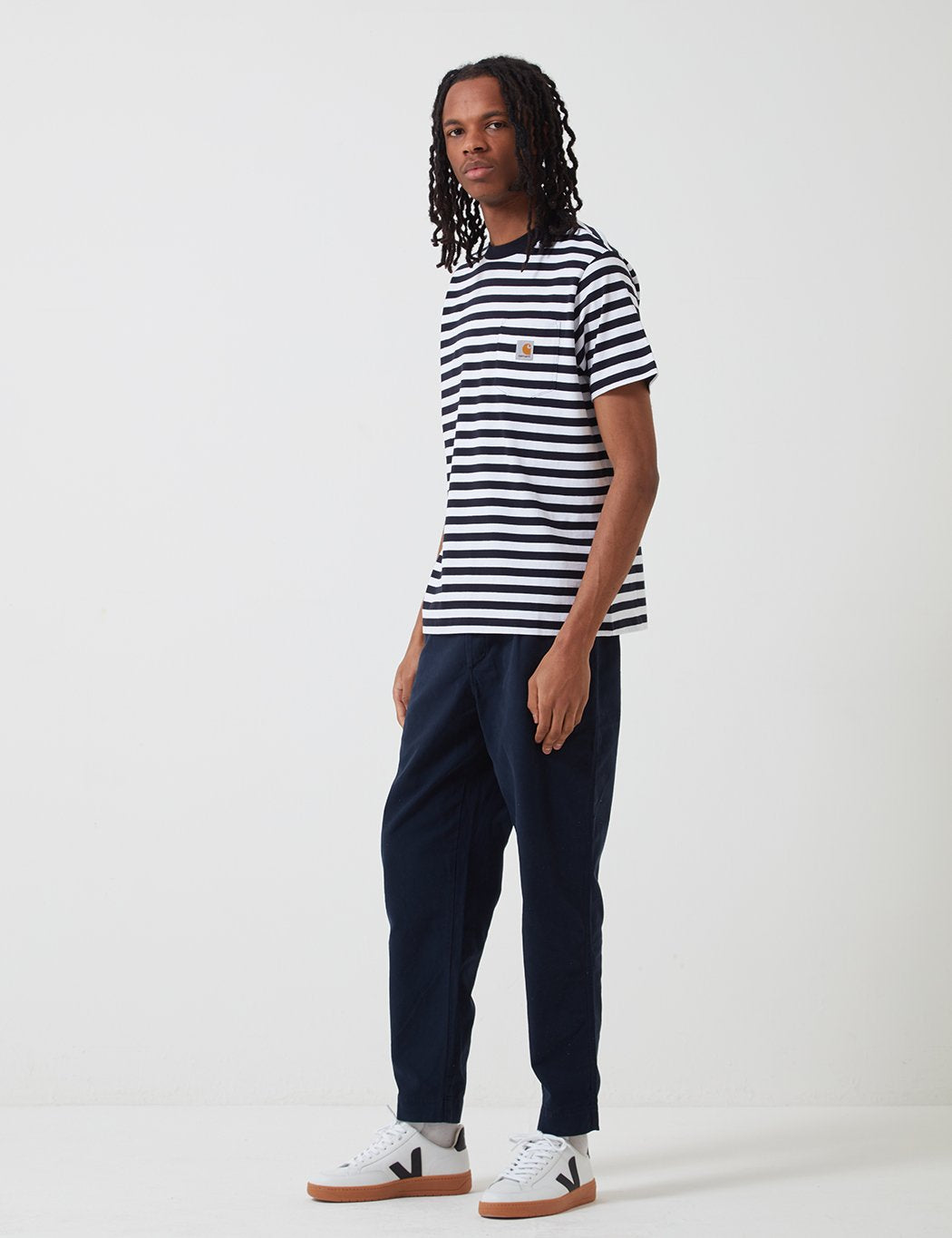 Carhartt-WIP Scotty Pocket T-Shirt (Stripe) - Dark Navy Blue/White