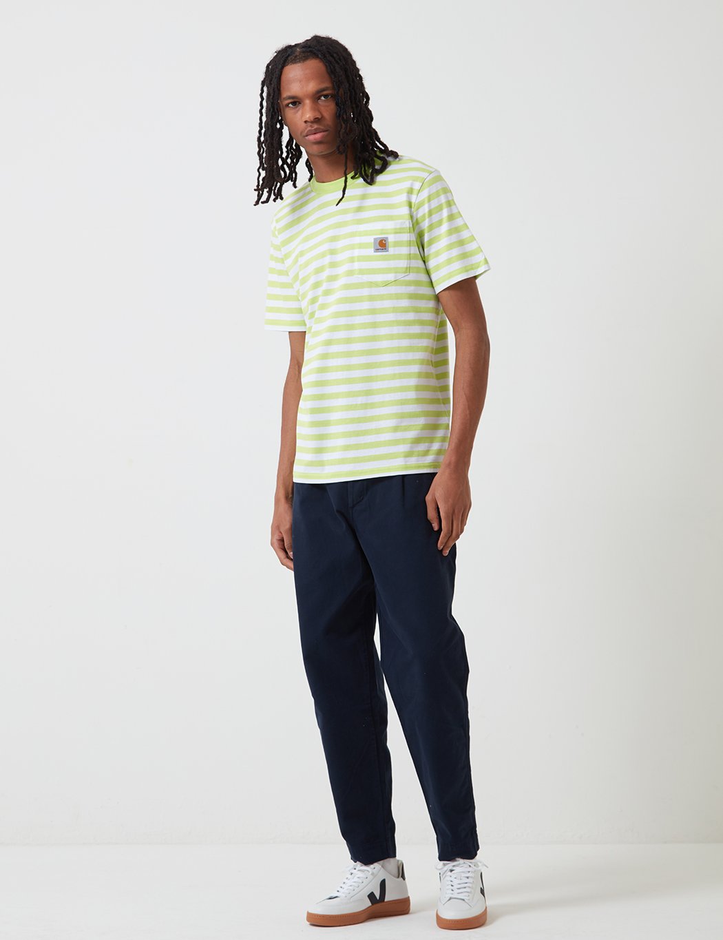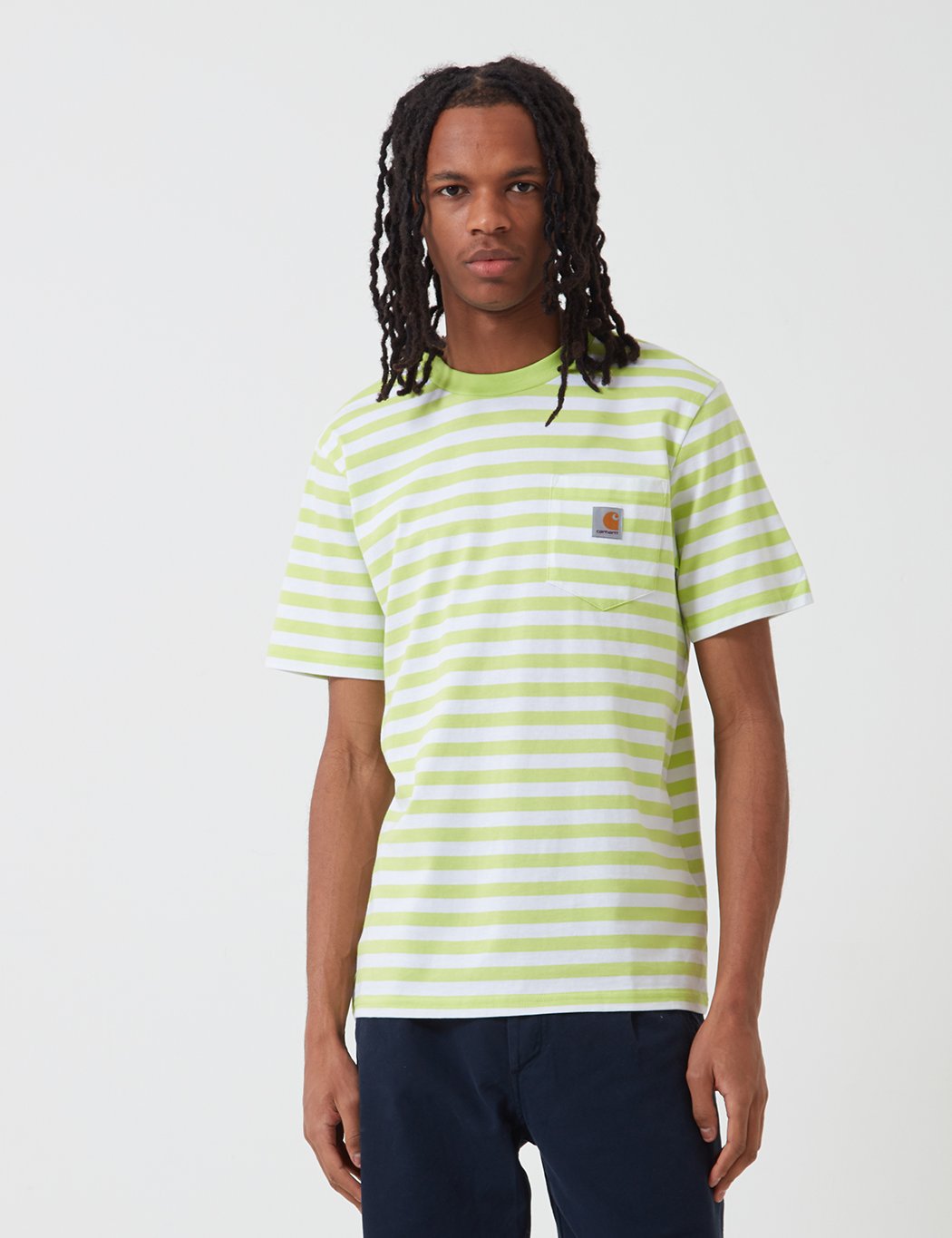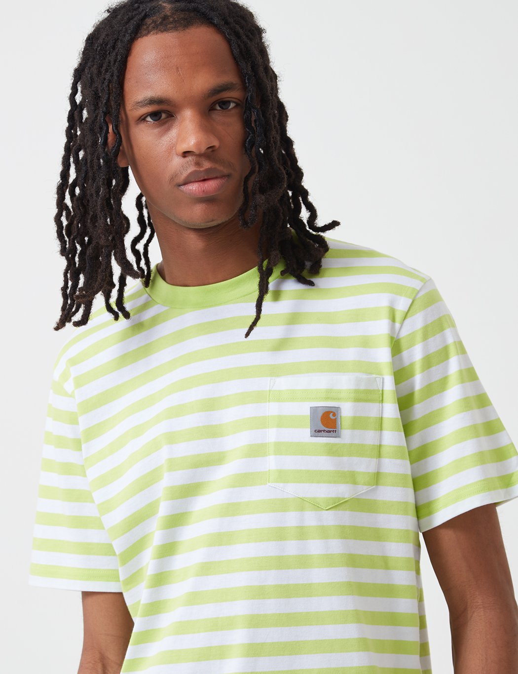 The Carhartt Scotty Pocket tshirt in lime green and white stripes from the Carhartt t-shirts Spring/Summer 2020 collection.