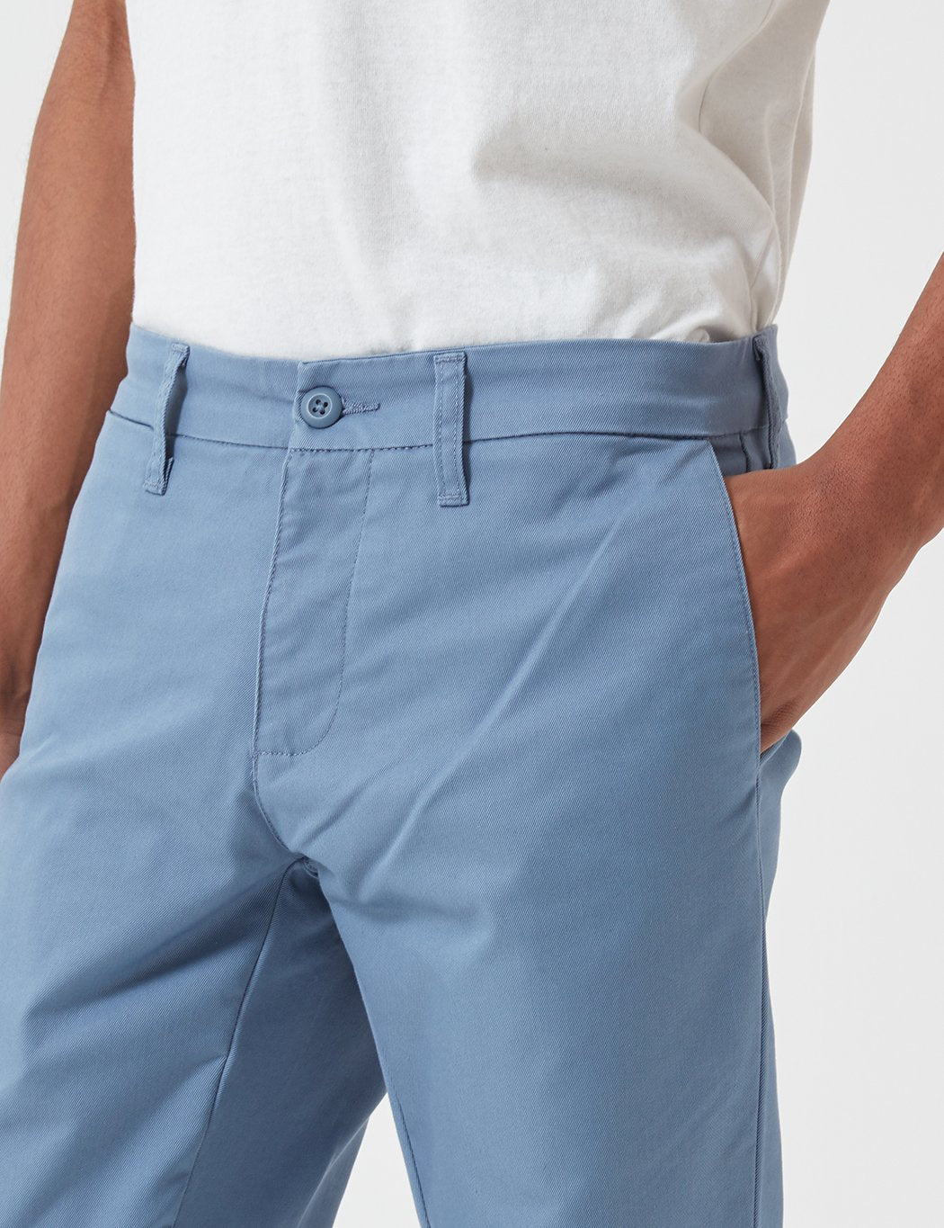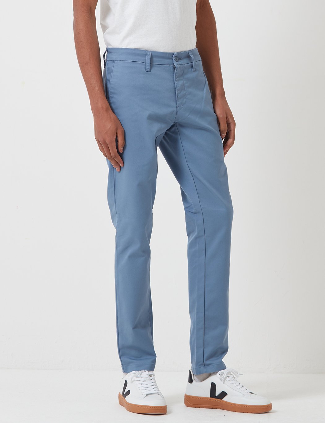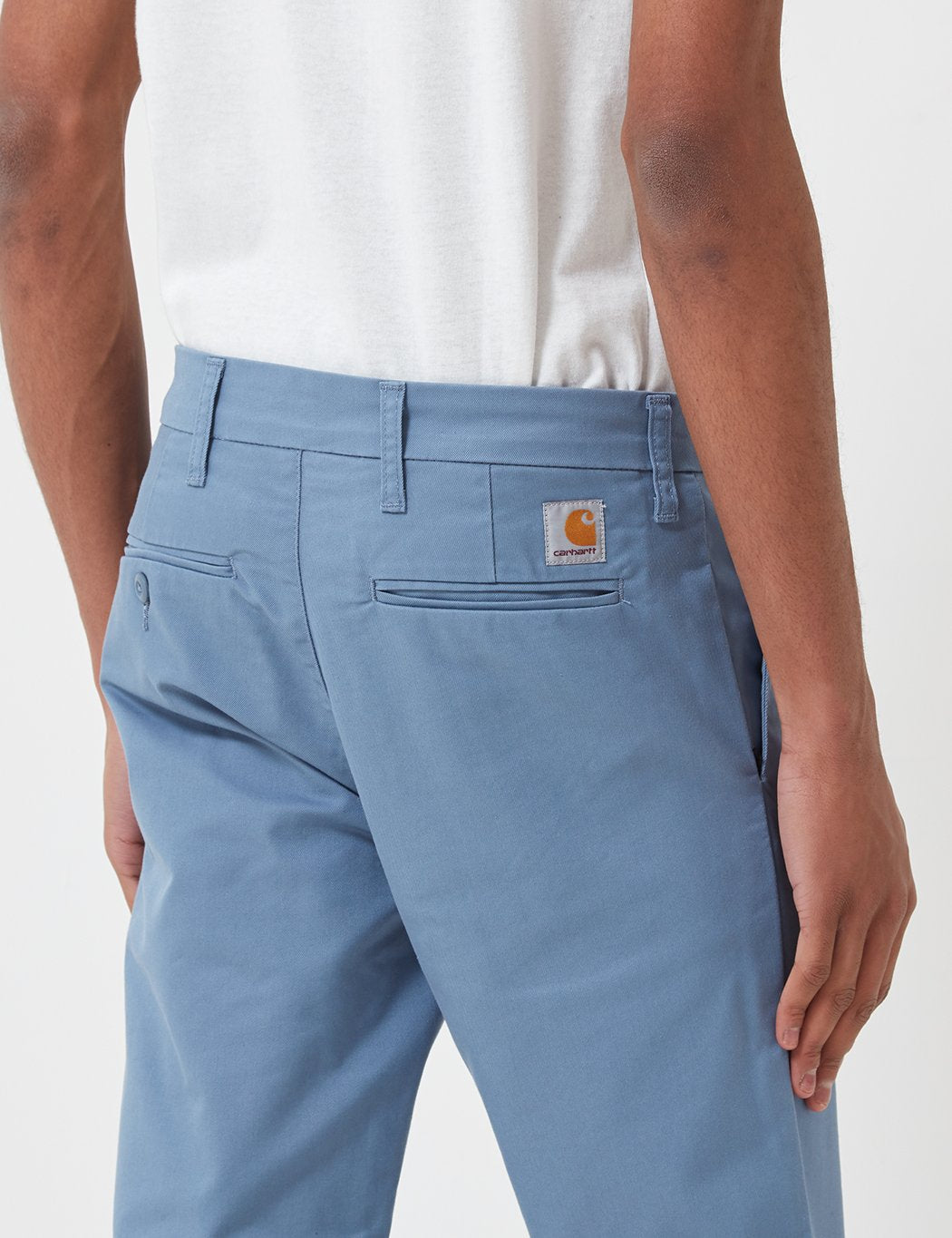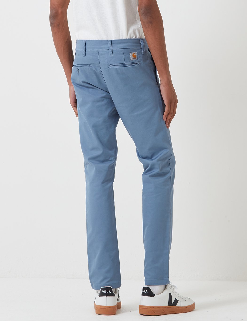 From Carhartt-WIP the classic Carhartt Sid Pant chinos in Mossa blue from the Carhartt Sid chinos core collection. The Carhartt Sid Pant is their slim tapered fit chino adorned with the classic woven brand label on the back.