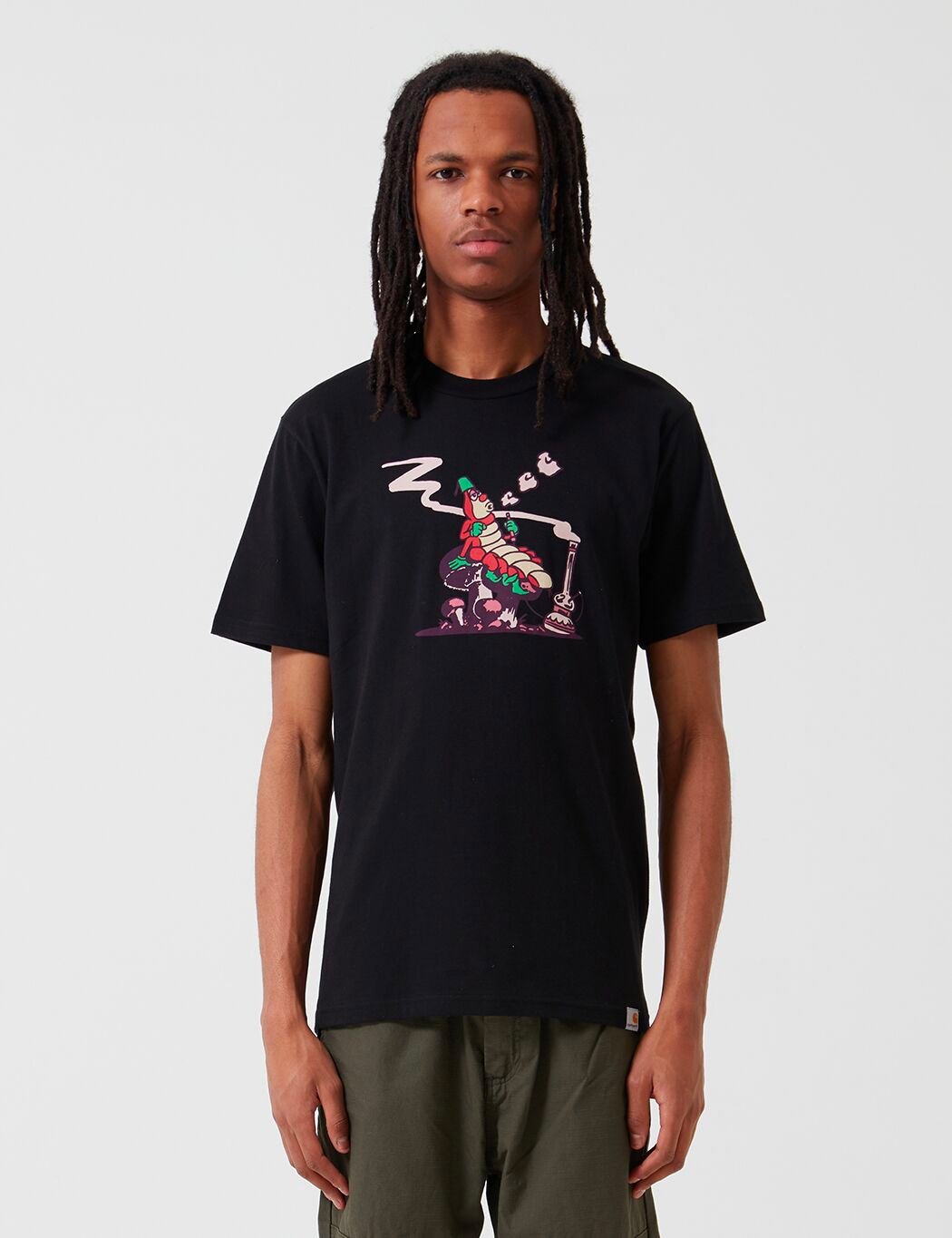 Short Sleeve regular fitting Silkworm Carhartt t-shirt with caterpillar graphic artwork on chest. Finished with Carhartt tab branding.