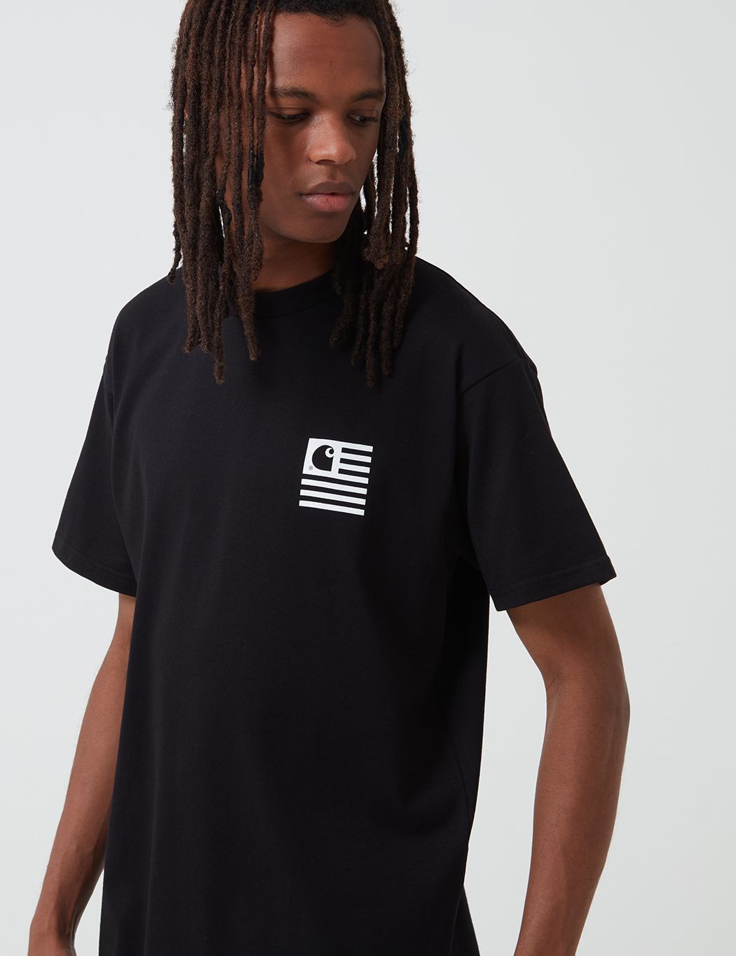 The Carhartt-WIP State Chromo T-Shirt in Black with back graphic from the Carhartt WIP t-shirts collection.