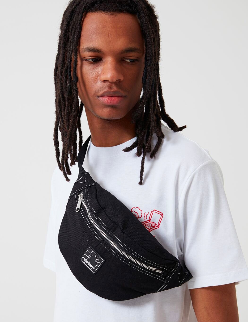 The Carhartt-WIP Stratford Hip Bag in Black/White from the Carhartt accessories Spring/Summer 2020 collection.