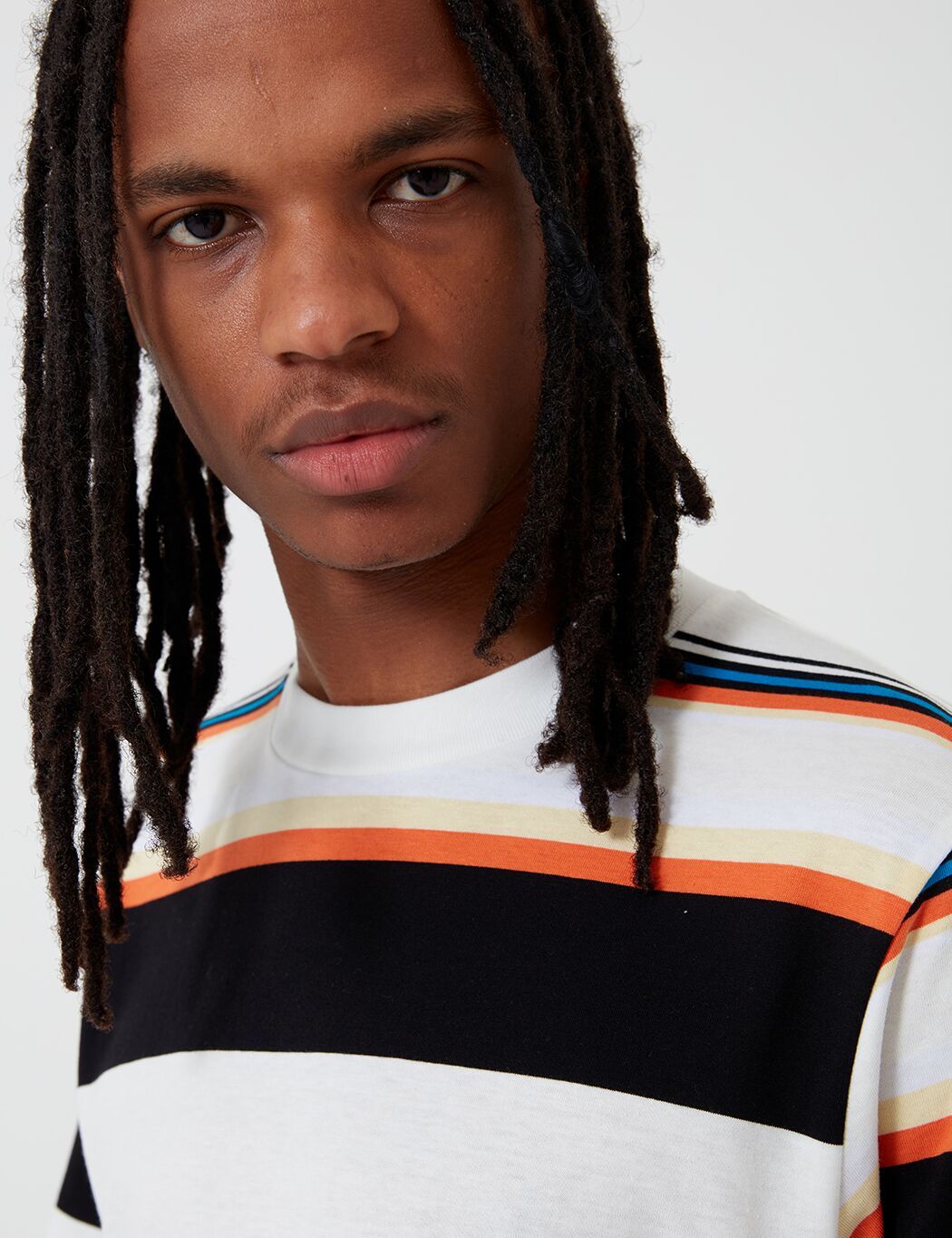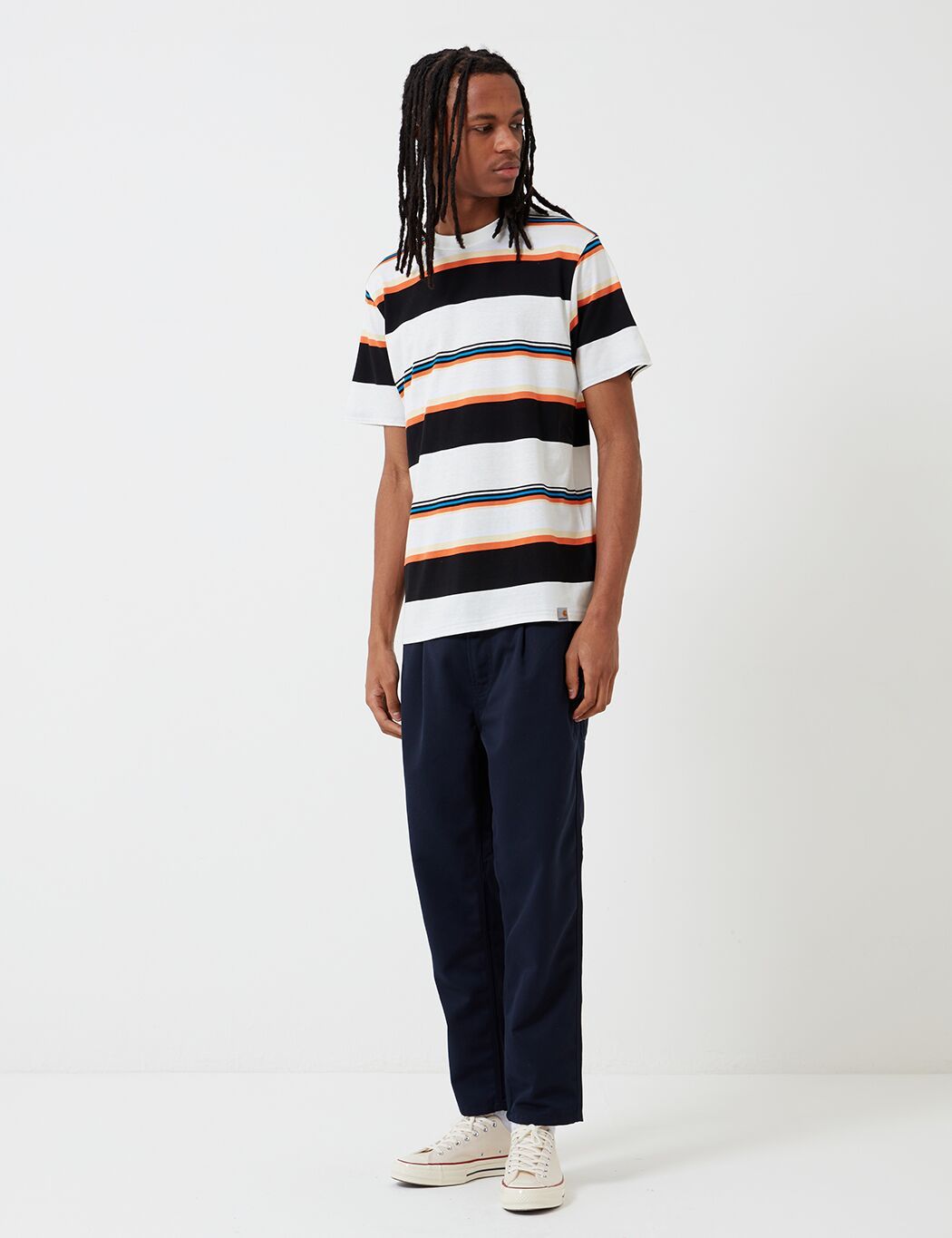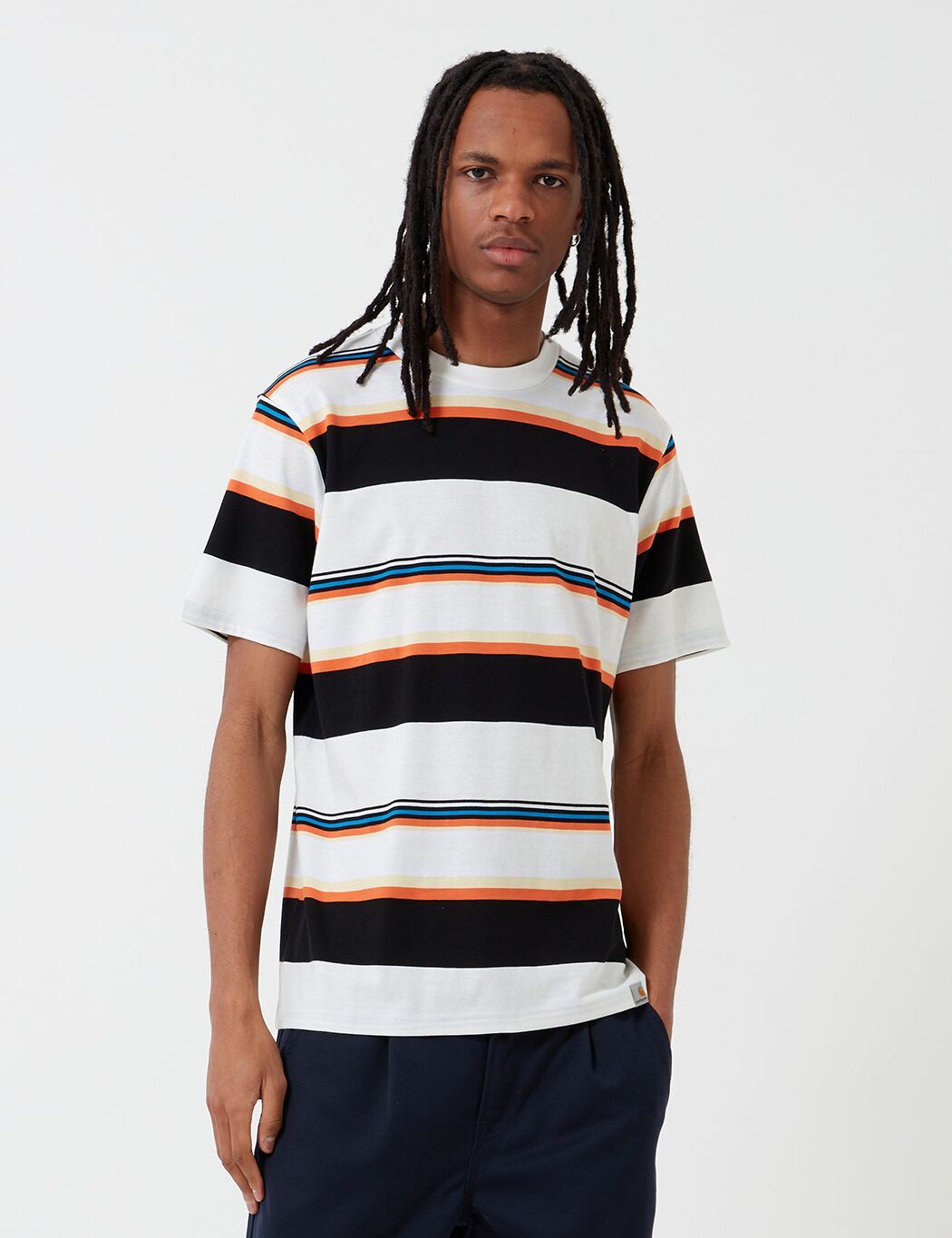 The regular fit Sunder t-shirt from Carhartt is yarn dyed, and features stand out irregular horizontal stripe detail. Signed off with Carhartt's embroidered logo on the chest.