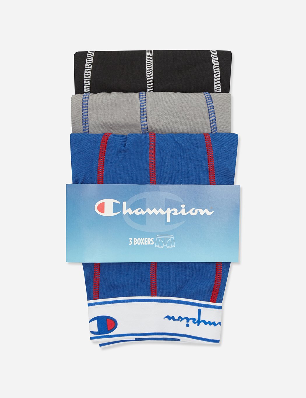 Champion Boxer Shorts (3 pack) - Royal Blue/Grey/Black