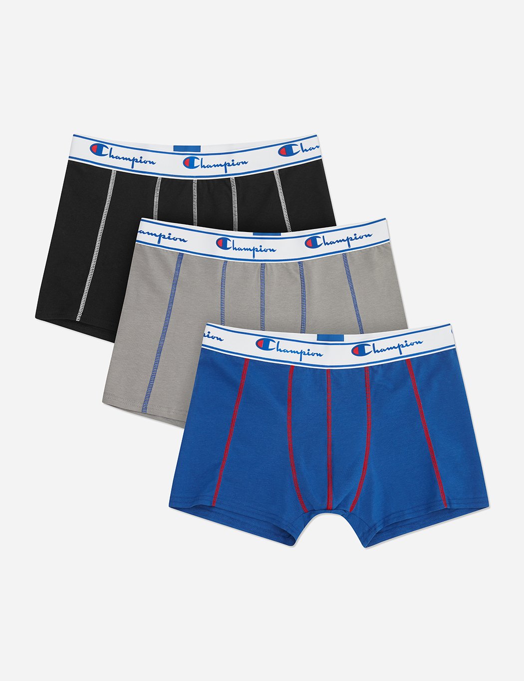 The Champion Classic Sports boxer shorts in a 3 pack colour set of royal blue, grey and black from the Champion accessories Autumn/Winter 2019 collection.