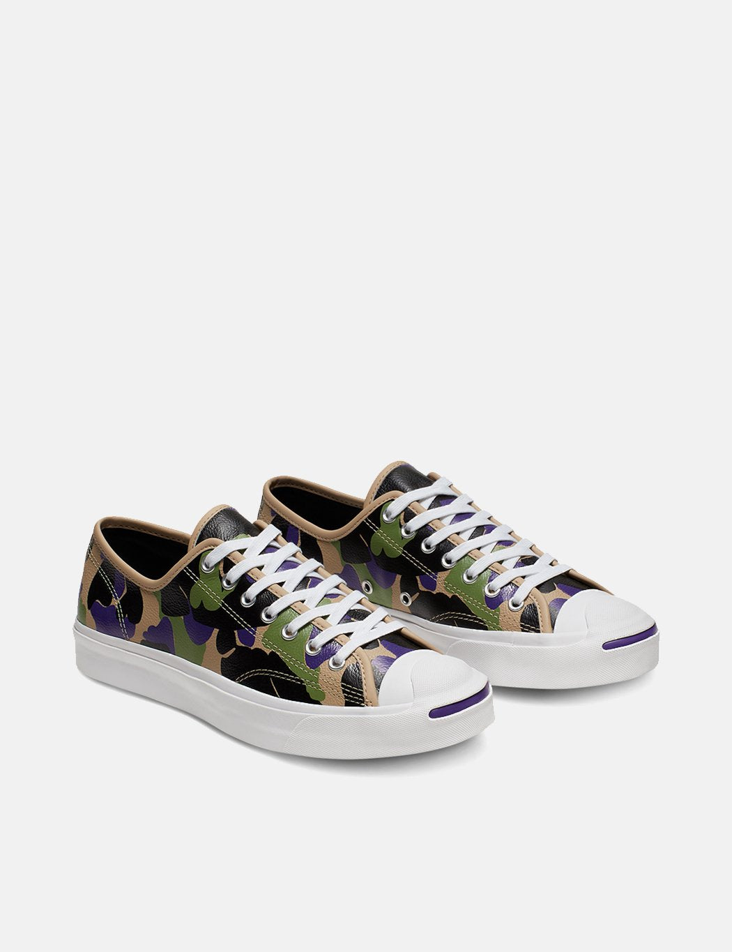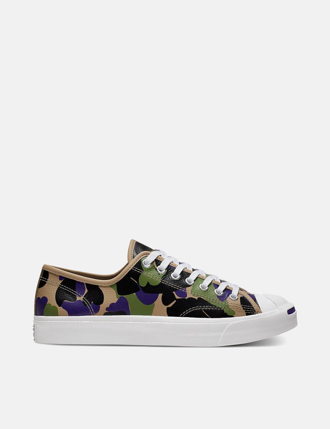 A throwback print from Converse, featuring black, ginger and purple camouflage design on a leather upper. The Classic converse signature license plate branding on the side panel. OrthoLite insole for cushioning, and classic 35mm rubber taping on sole unit.