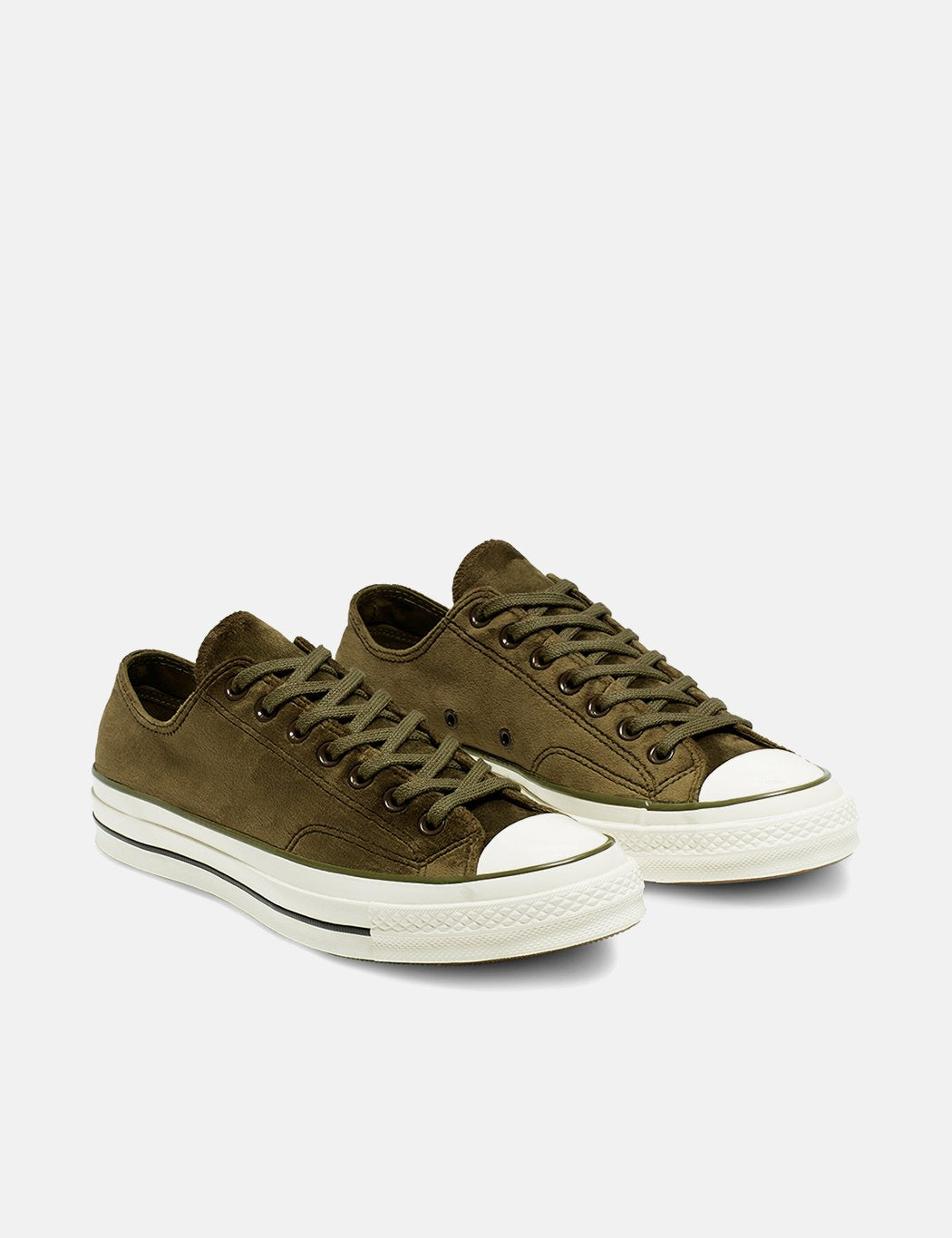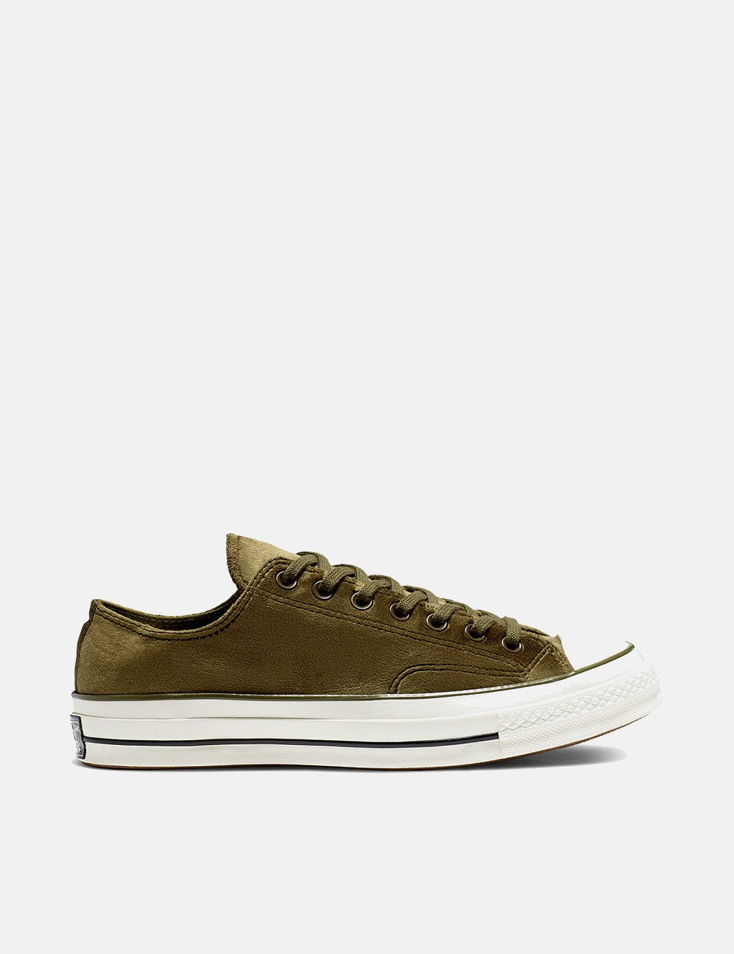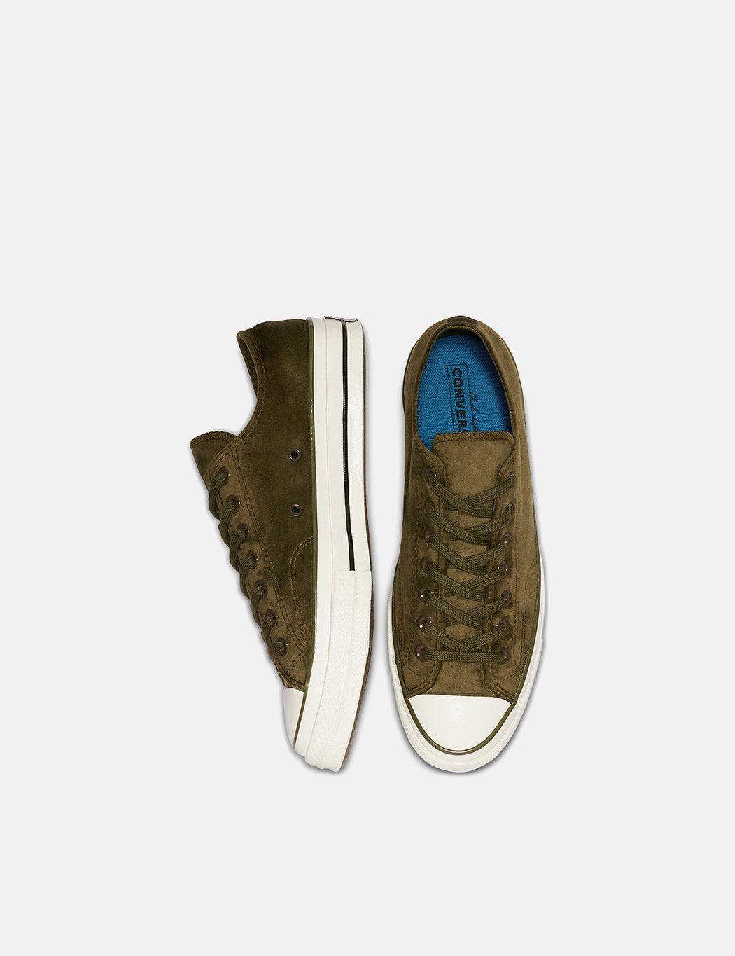 From the Converse 1970s' collection the Chuck Taylor low in Surplus Green velvet with Egret sole and black foxing.