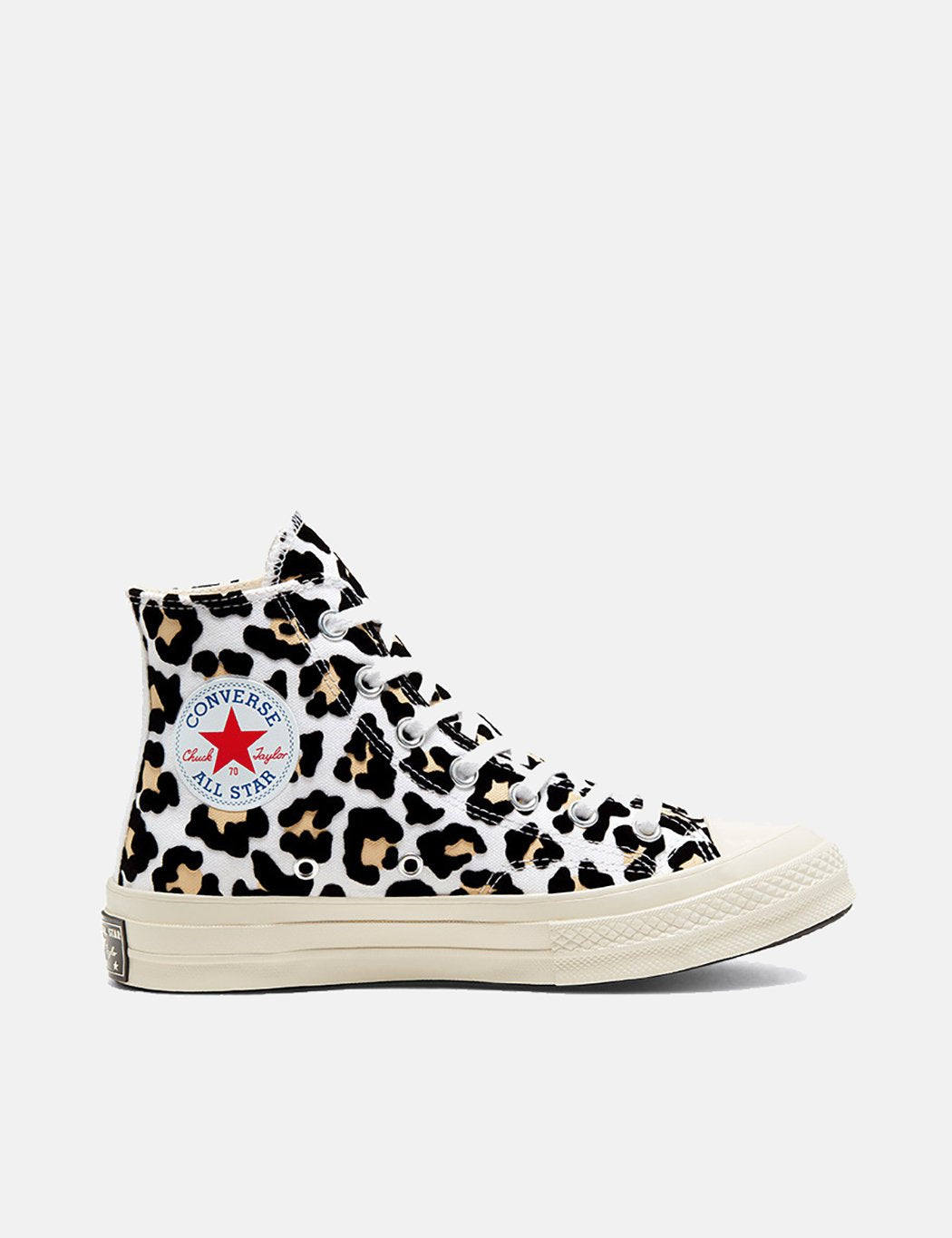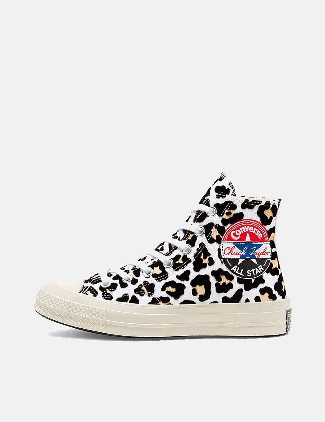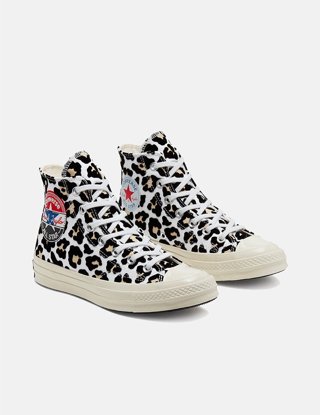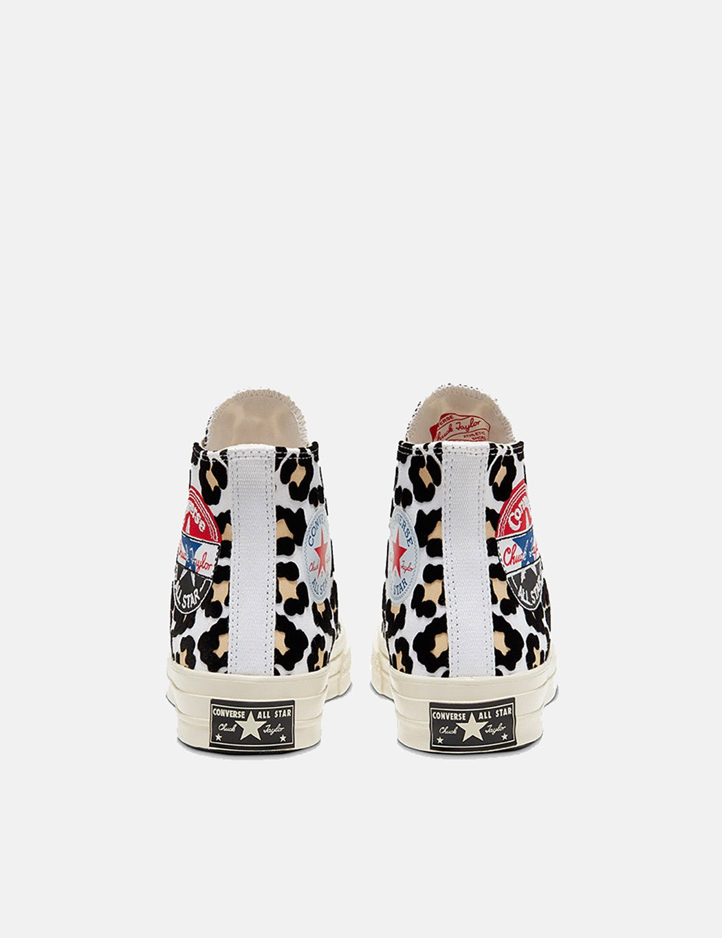 The original Chuck Taylor in leapard print detailing, featuring triple colour converse patch, with a with a spliced and patterned twist.