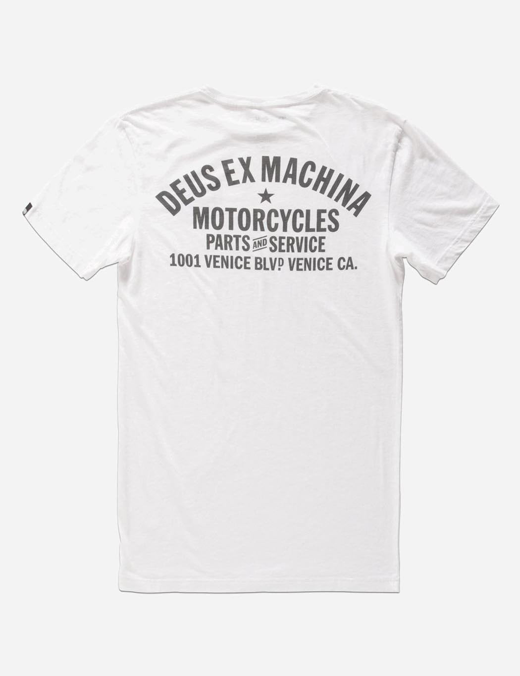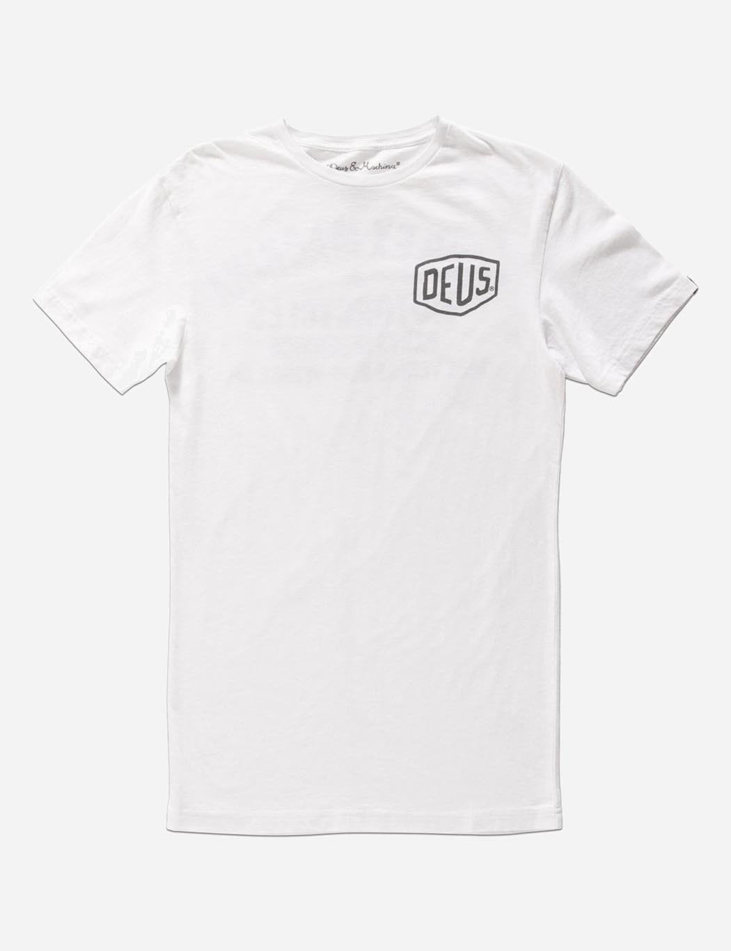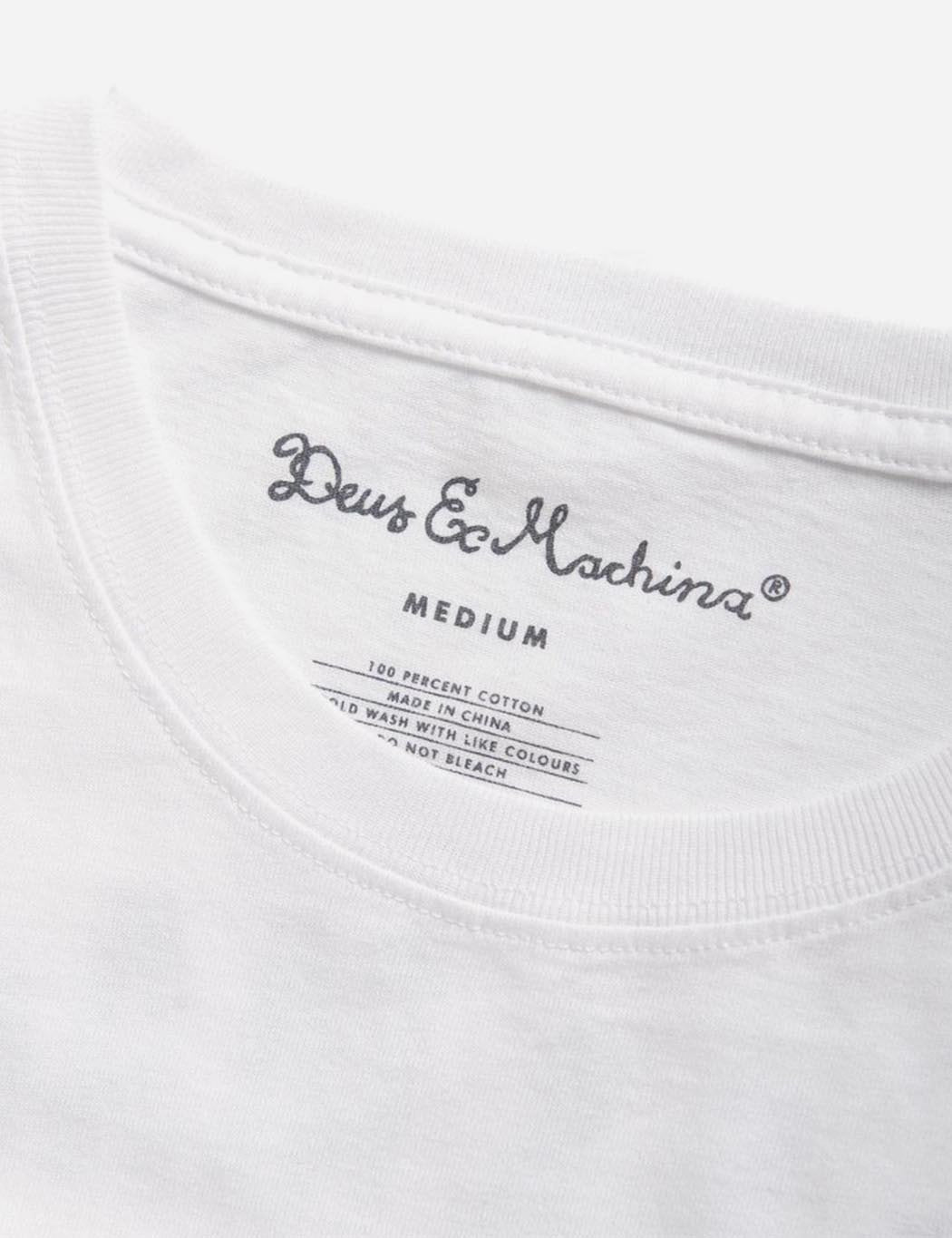The Deus Ex Machina Venice LA Address tshirt in White from the Deus Fall/Winter 2016 classics collection. This Deus t-shirt is a regular fit pocket tee which features front and back address prints, soft handle.