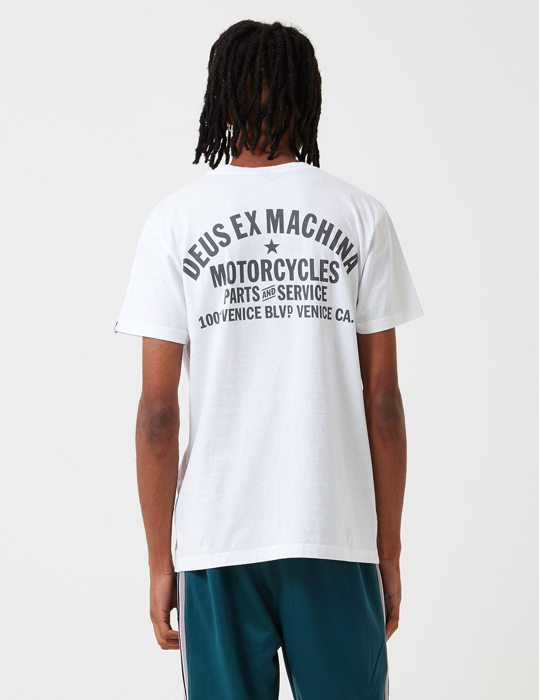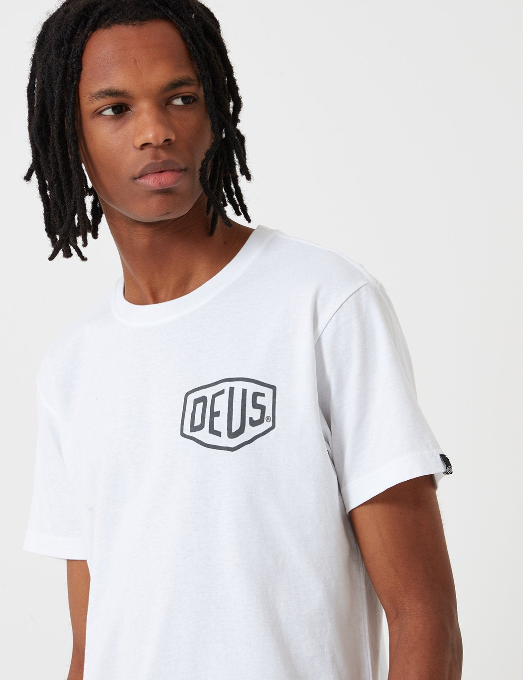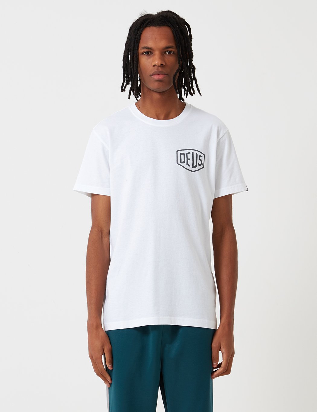 The Deus Ex Machina Venice LA Address tshirt in White from the Deus Fall/Winter 2016 classics collection. This Deus t-shirt is a regular fit pocket tee which features front and back address prints, soft handle.