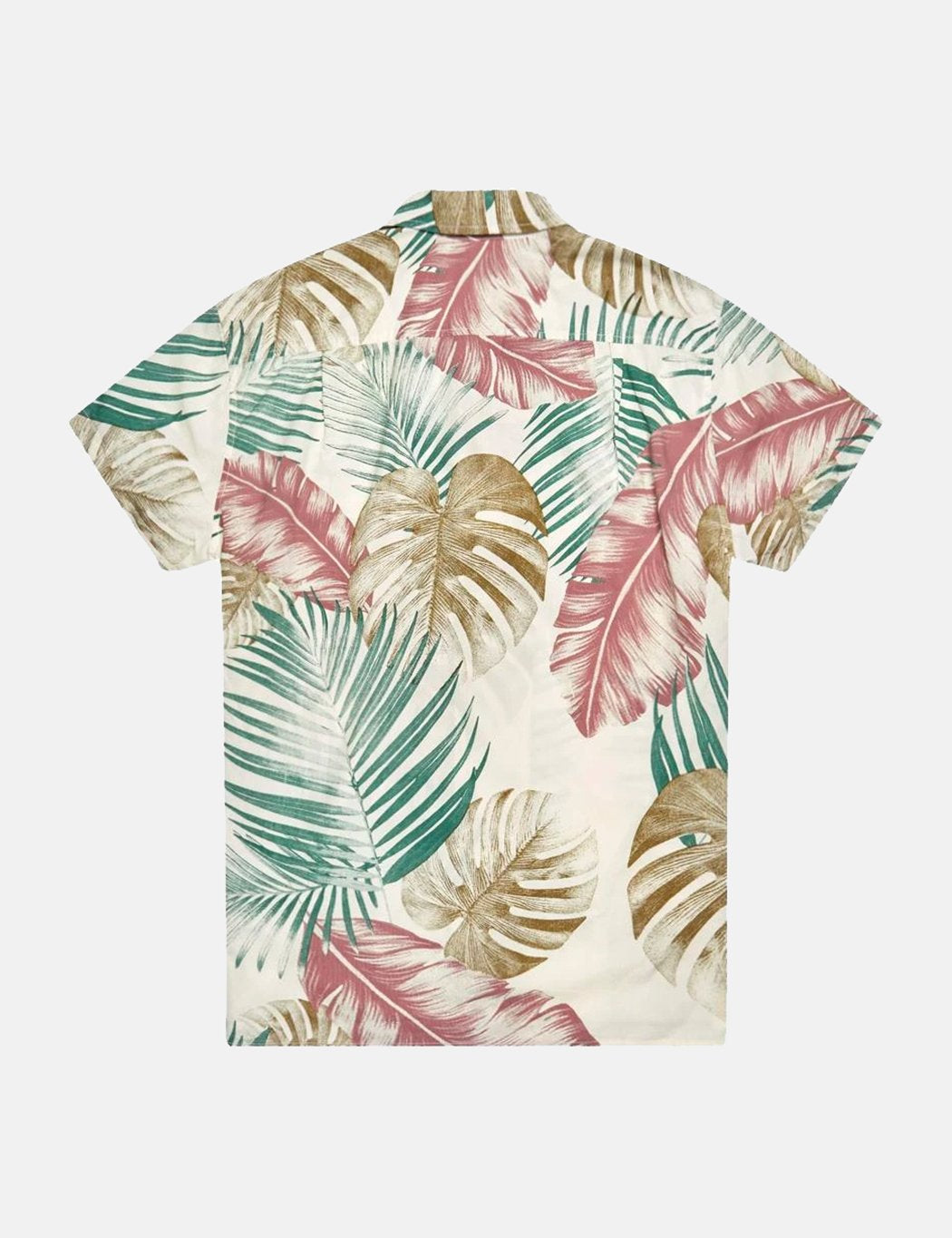Relaxed fit summer shirt with all over multi colour Palm Yardage graphic, open rever collar. Made in 100% Rayon Fabrication With Heavy Enzyme Stone Wash