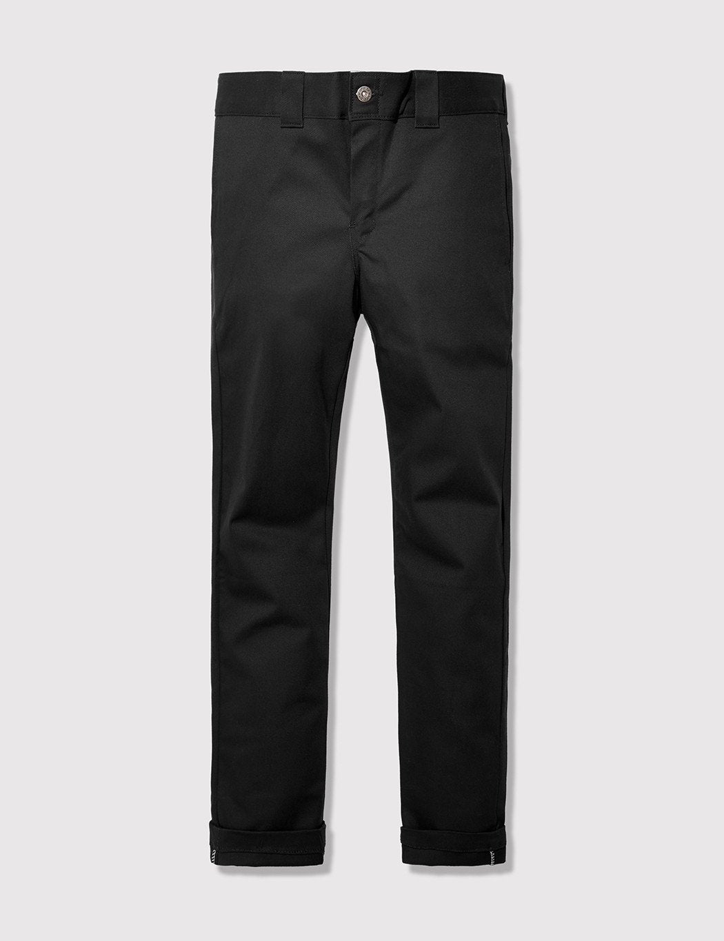 The Dickies 803 Slim work chino pant in Black is a staple item from the classic Dickies collection. With a distinct skinny fit and low rise design that hits just below the waist, the 803 is a versatile item with all the quality and comfort of earlier work pant styles. Using the same durable cotton mix fabric as the original Dickies 874, the 803 is an even more fitted version of the 873 style to cater to changing fashions.