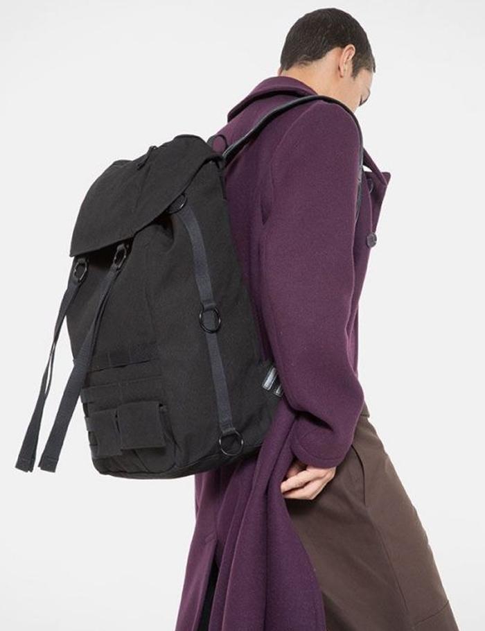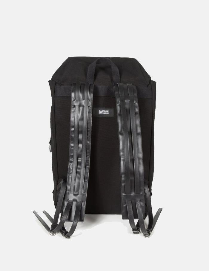 The Eastpak x Raf Simons Large Topload Loop Backpack in black from the Eastpak x Raf Simons collaboration Fall/Winter core collection.