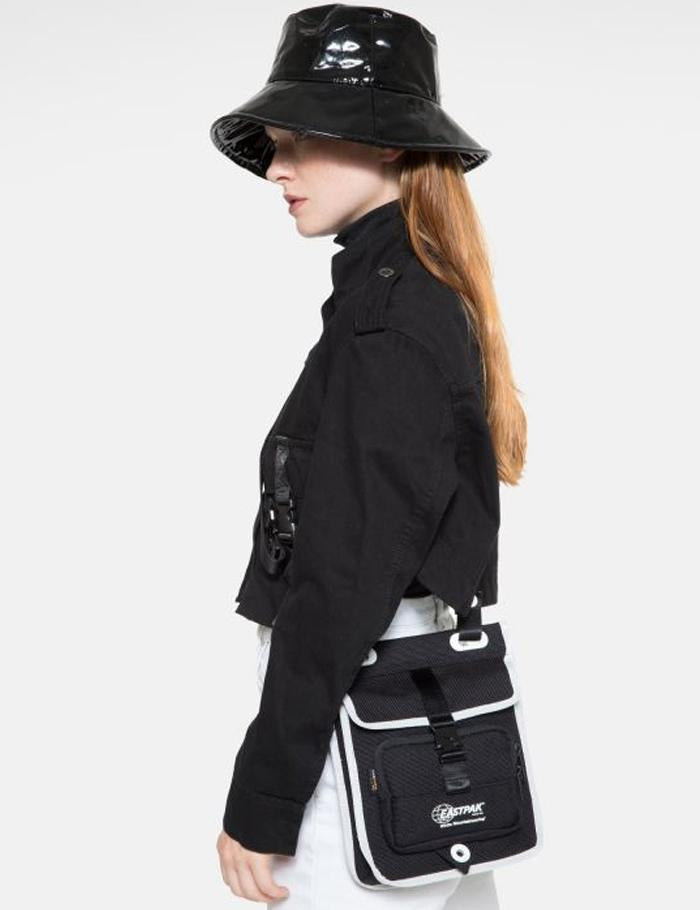 The Eastpak x White Mountaineering Musette shoulder bag in dark black from the Eastpak x White Mountaineering collaboration Fall/Winter core collection.
