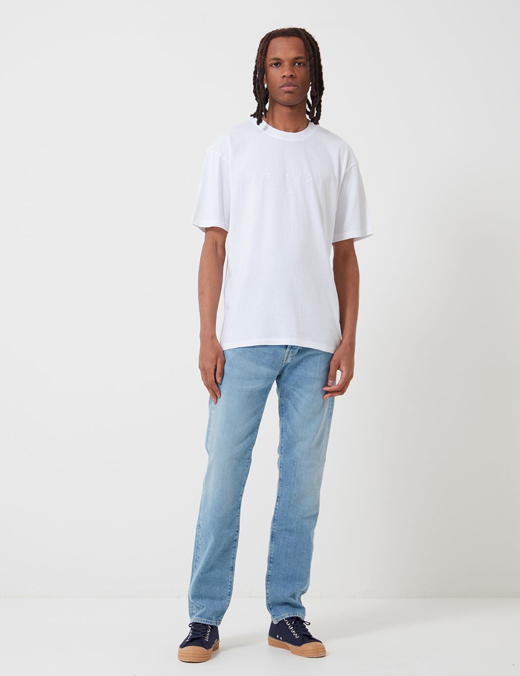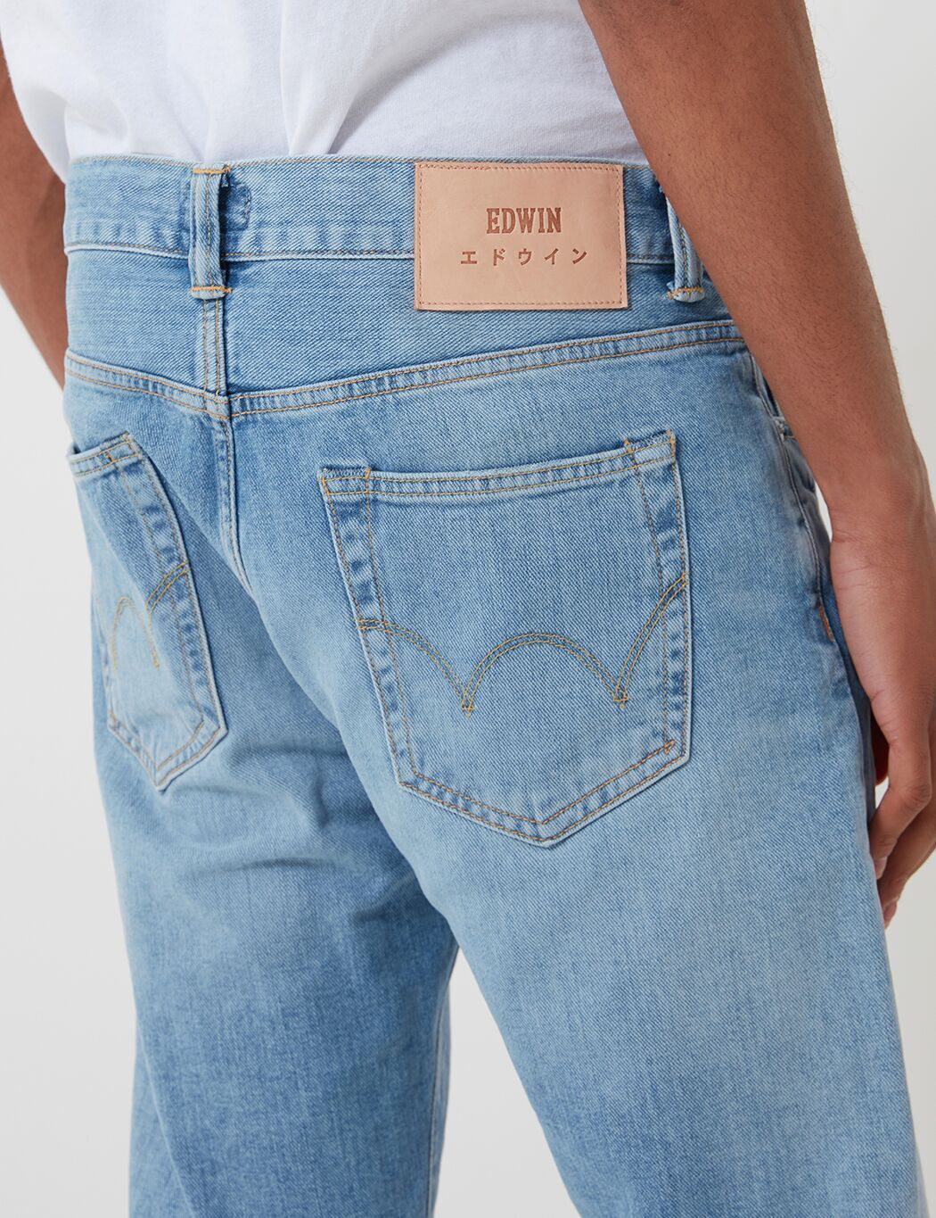 The Edwin ED-80 Slim Tapered Jeans (Yoshiko Left Hand Denim) in Blue, Arisu Wash from the Edwin jeans Spring/Summer 2020 collection.