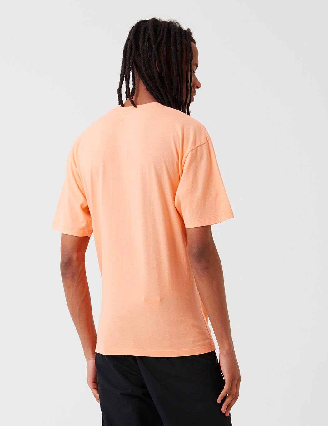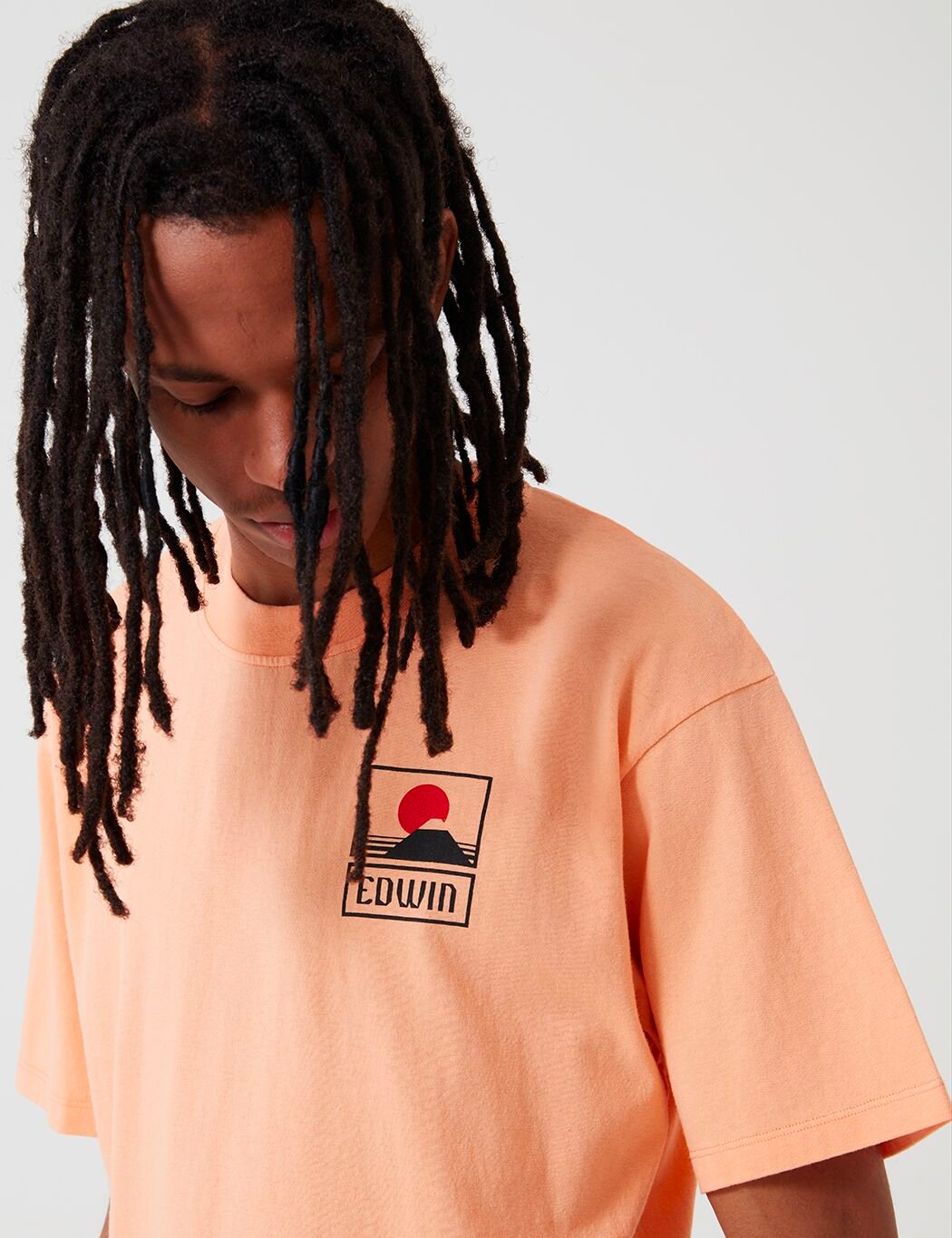 The Edwin Sunset On Mt. Fuji tshirt in Cantaloupe Orange garment washed cotton t-shirt from the Spring/Summer 2020 Edwin t-shirts collection.