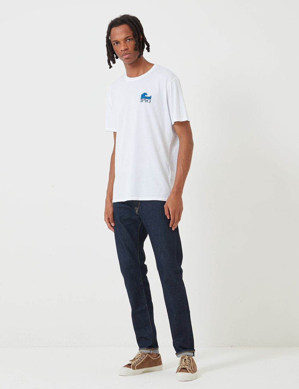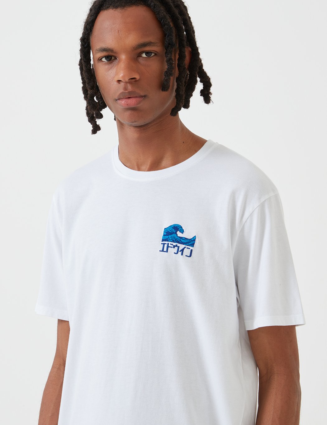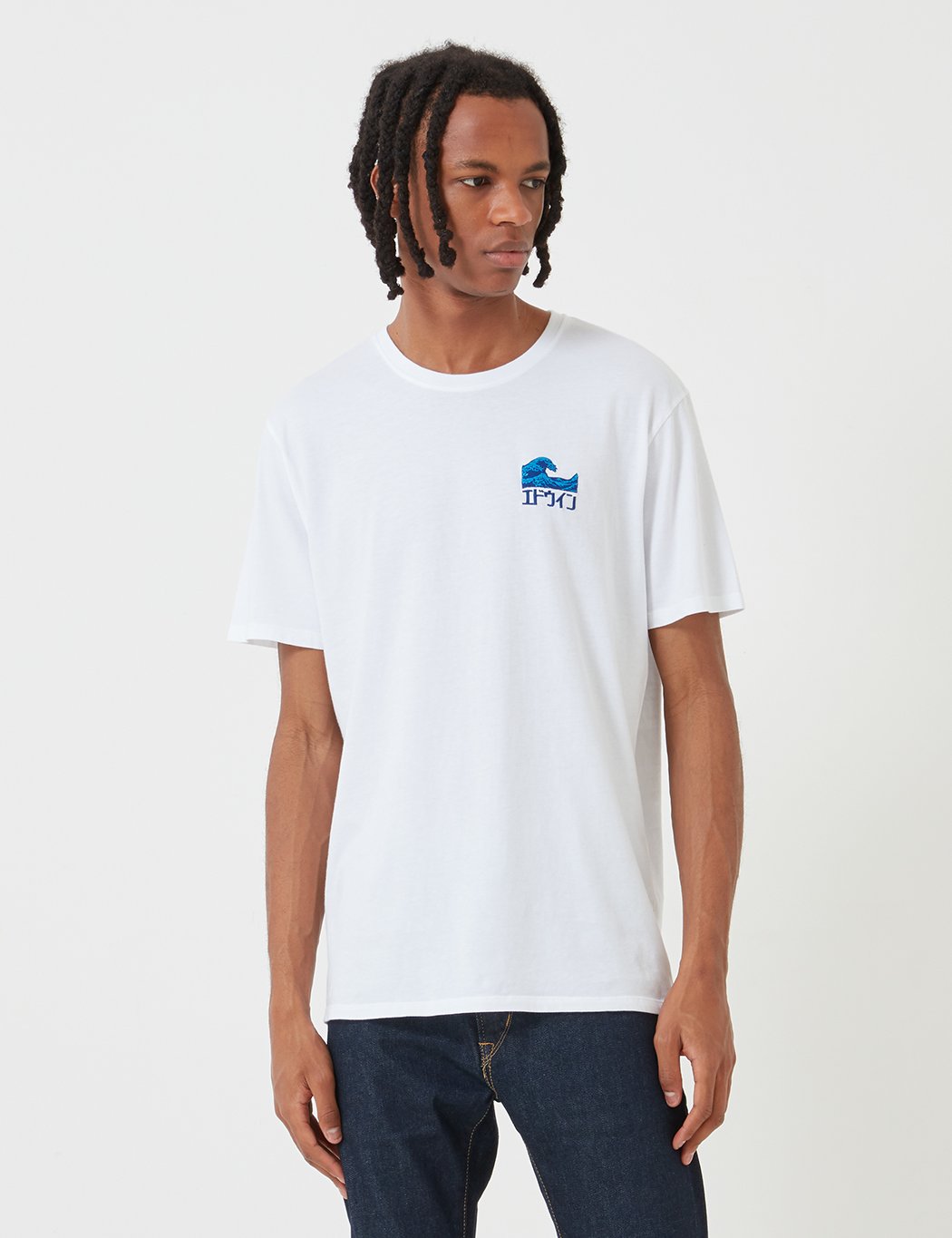The Edwin Wave t-shirt in white garment washed cotton t-shirt from the Indigo Line FW 2019 Edwin T's Collection.