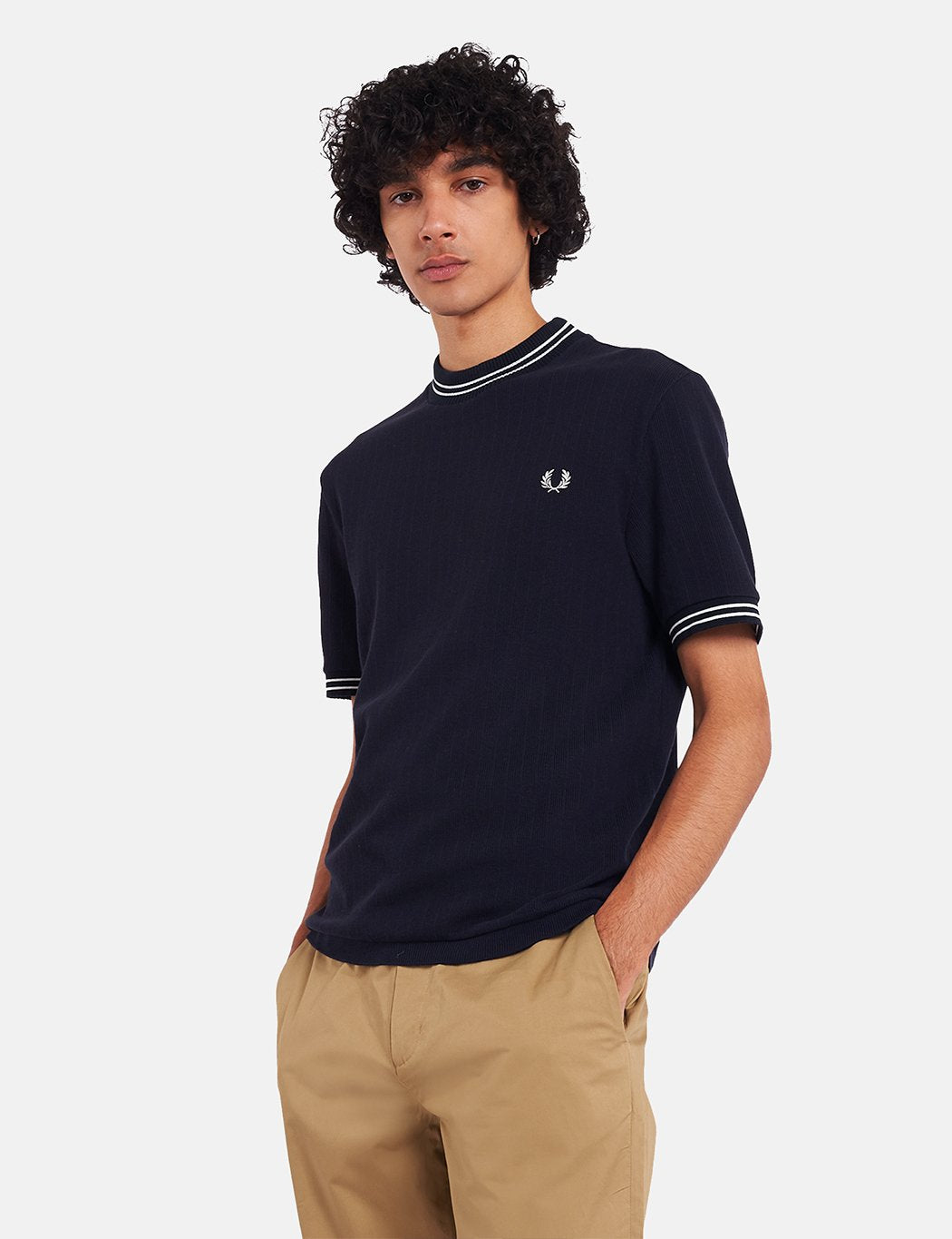 The Fred Perry Reissue Crew Neck Pique T-Shirt in navy blue from the Fred Perry t-shirts collection.